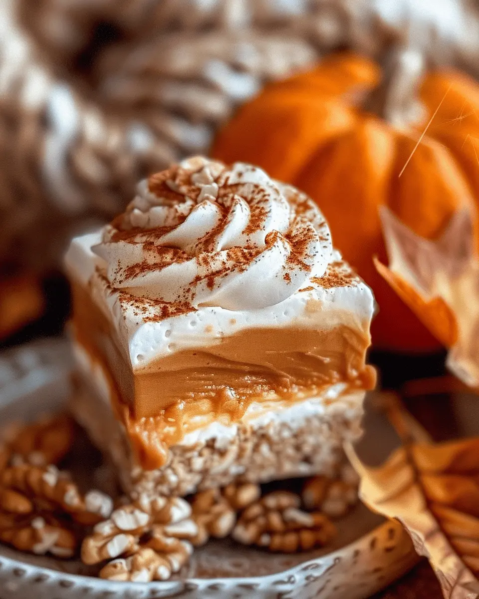 • Mini Pumpkin Parfaits: Cut the bars into smaller pieces and layer them with whipped cream and crushed graham crackers for charming parfaits.