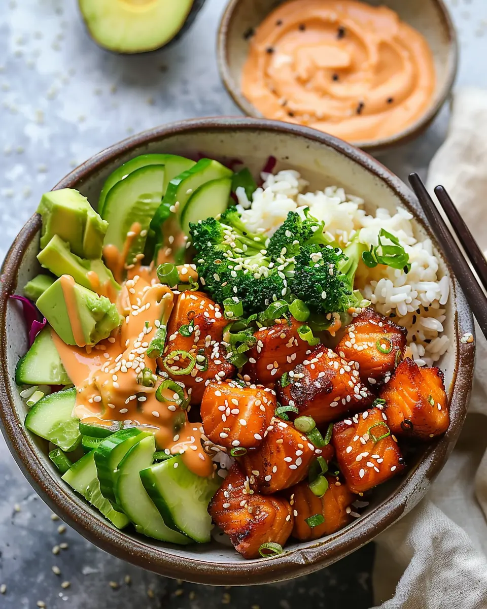 Pairing your salmon with a homemade or store-bought bang bang sauce will add the perfect kick to your bowls! For more on health benefits and flavor pairings, check out resources from the Mayo Clinic or Seafood Nutrition.