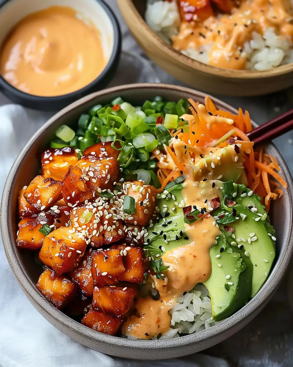Step-by-Step Preparation of Bang Bang Salmon Bites Bowls