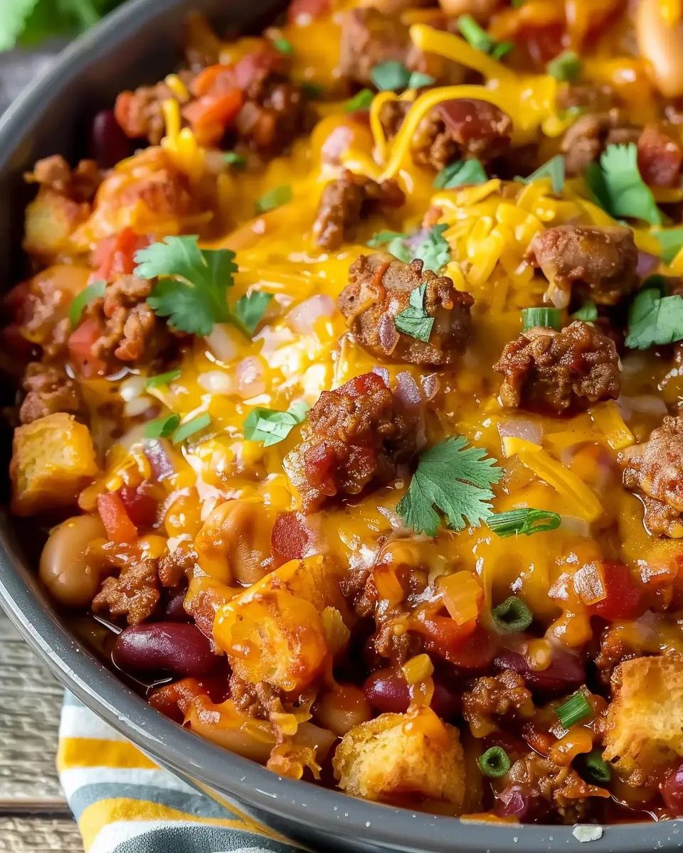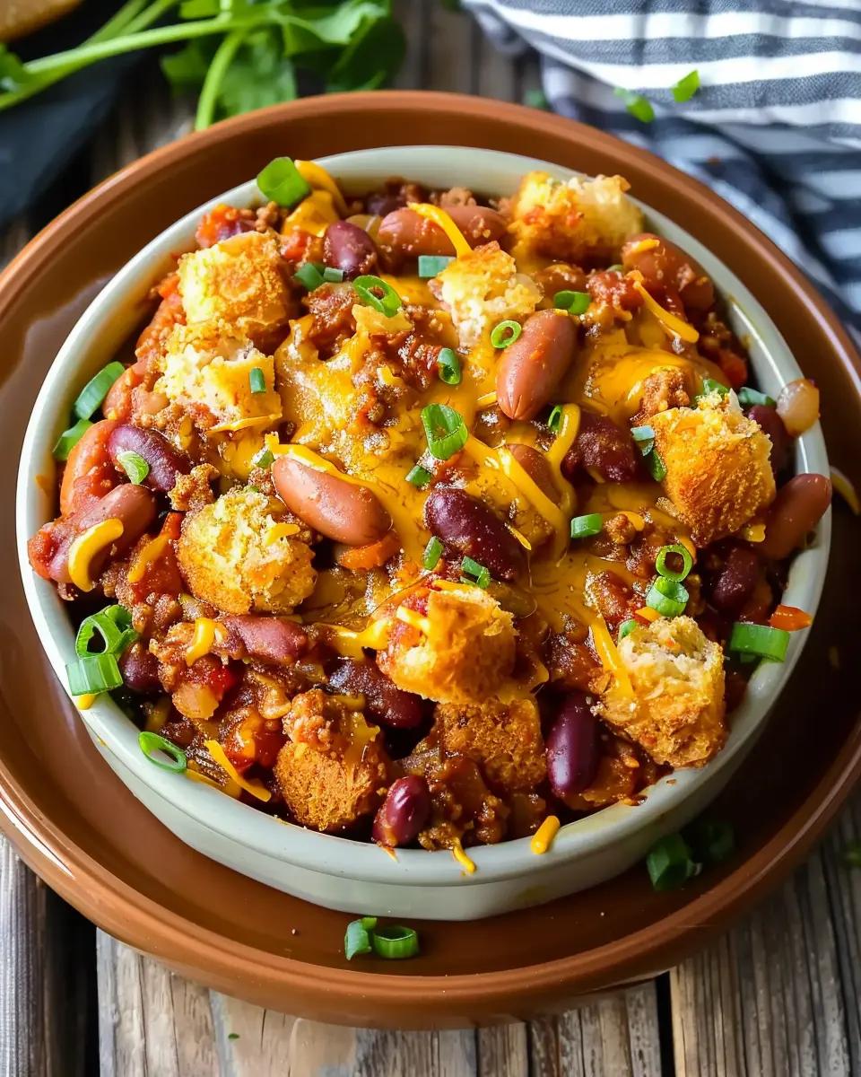 - Casserole Base: You can use cornbread mix or pasta as the base for your casserole. Cornbread adds a delightful sweetness, while pasta will soak up the chili flavors beautifully.