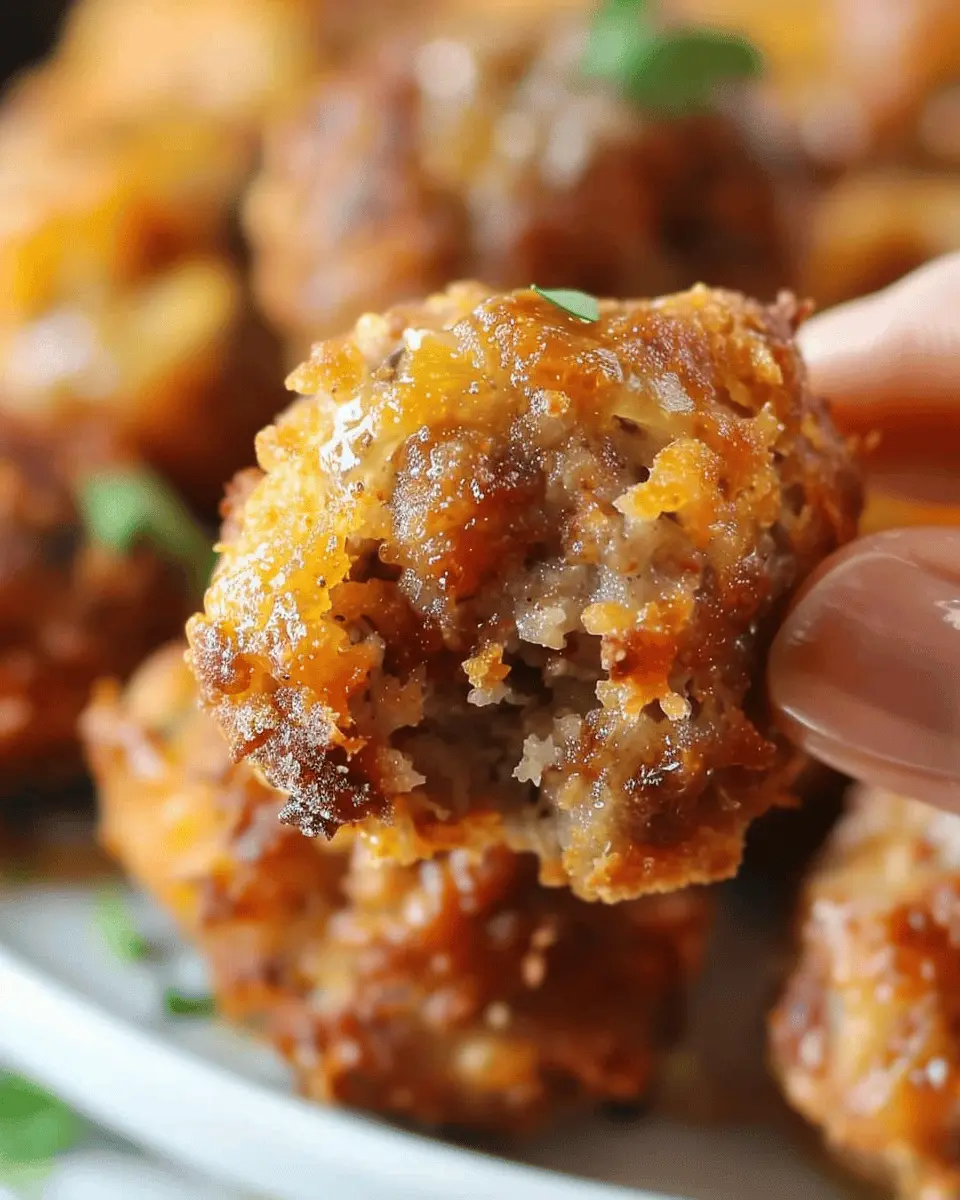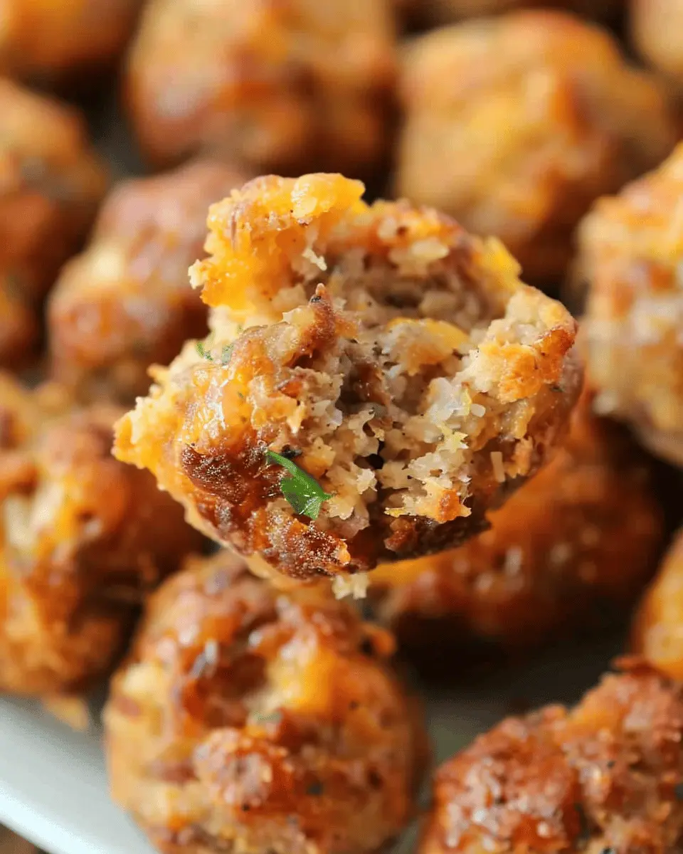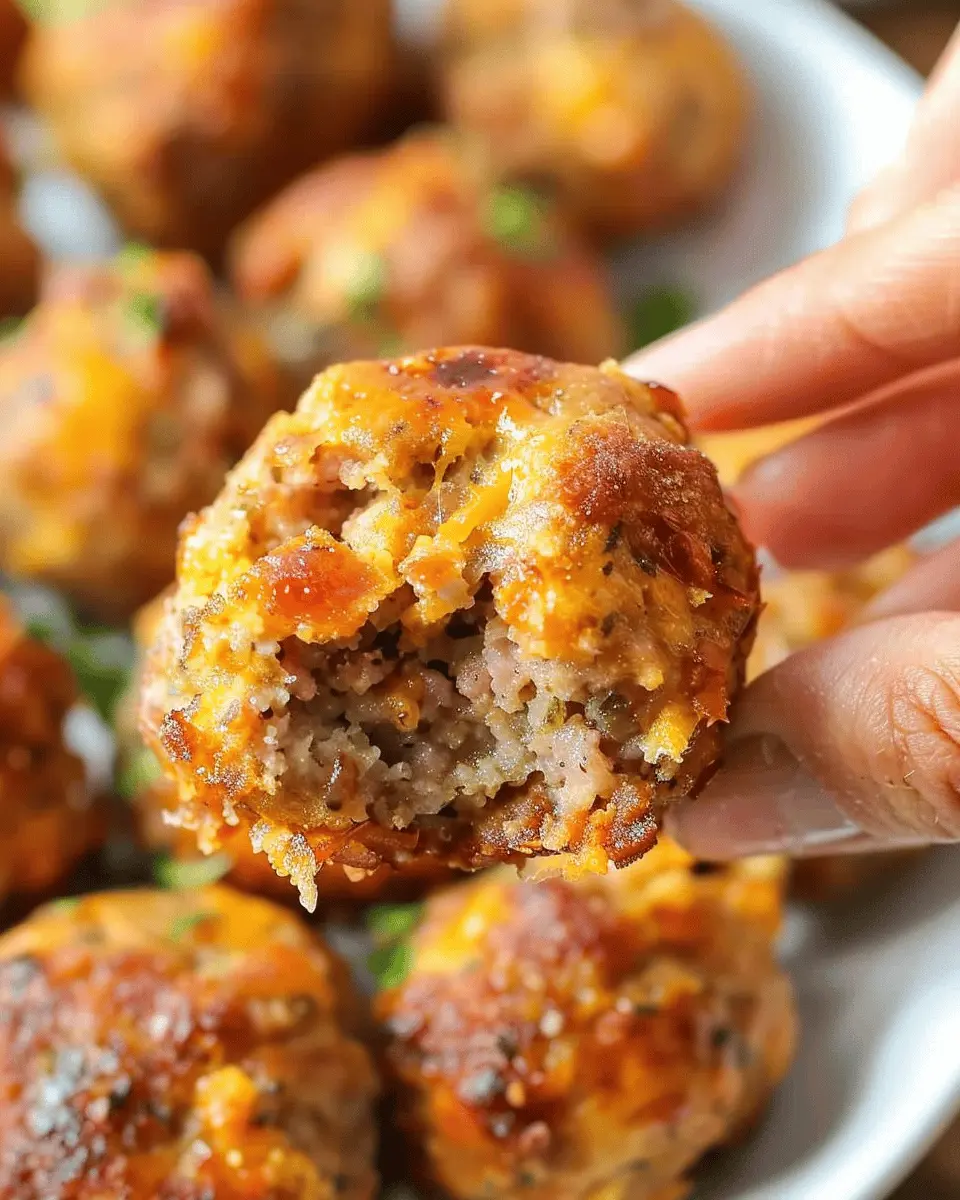 Delicious and easy-to-make Bisquick Sausage Balls featuring turkey bacon, perfect as a hearty appetizer.