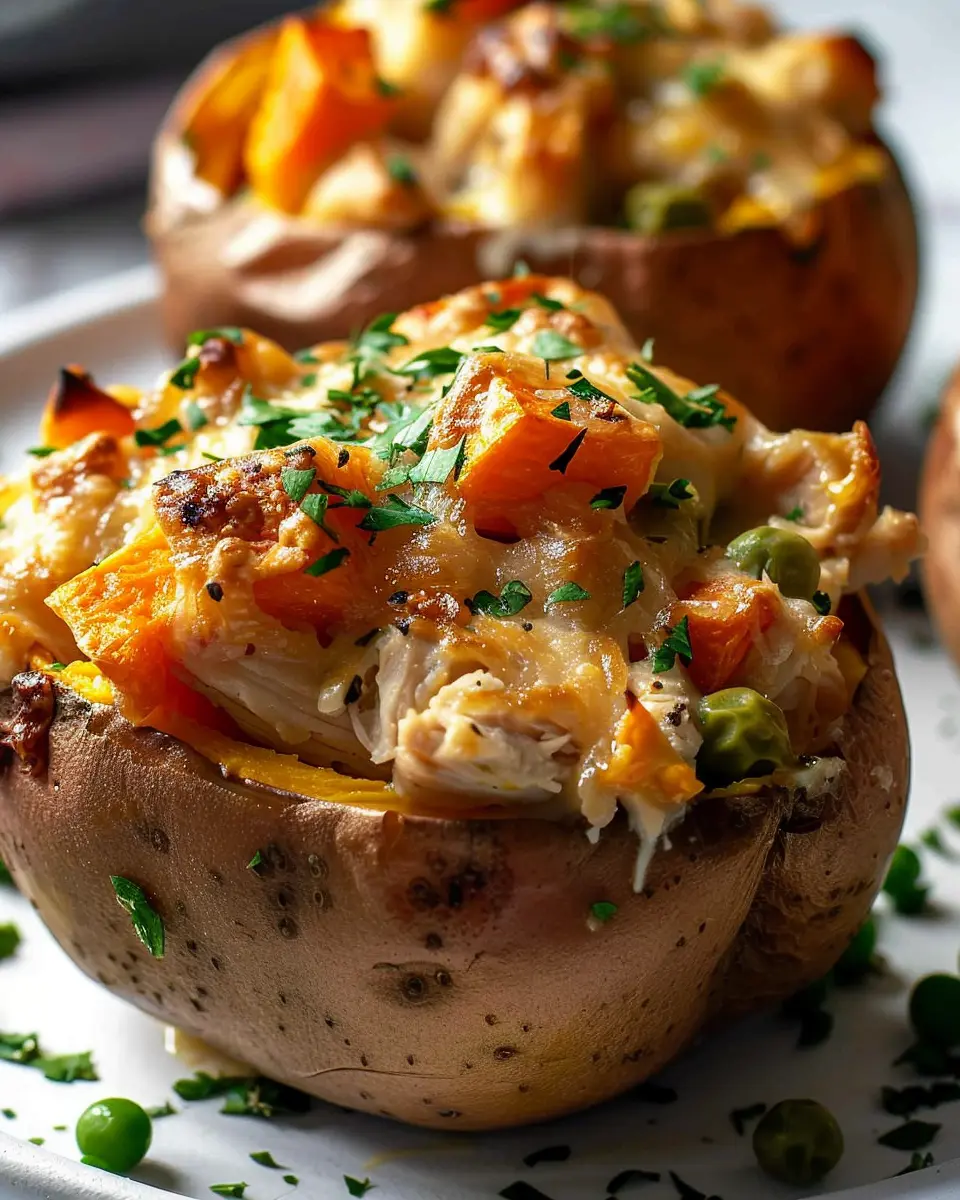 Chicken Pot Pie Stuffed Sweet Potatoes