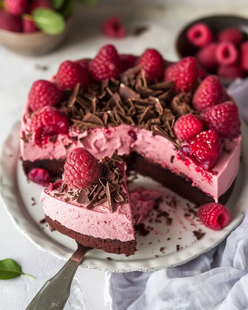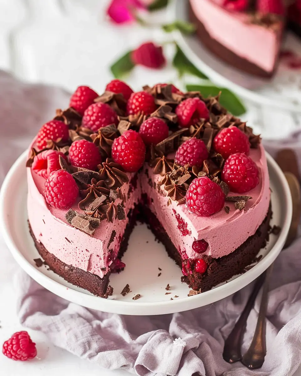 A rich and velvety chocolate raspberry mousse cake that combines the luscious flavors of chocolate and fresh raspberries. Perfect for special occasions or a delightful dessert after dinner.