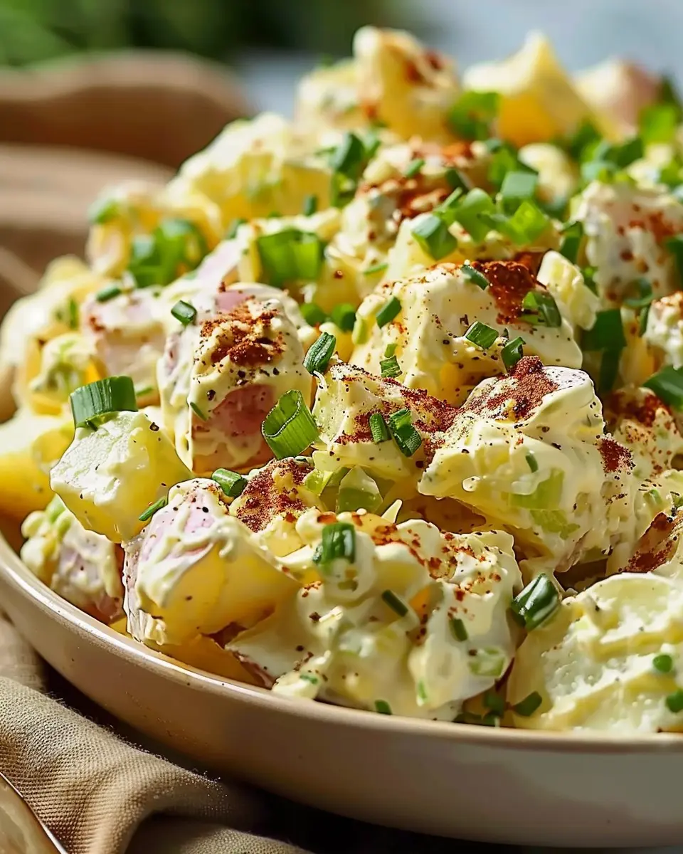 The base of this dish—starchy potatoes—helps it deliver the comforting satisfaction we often seek in meals. Loaded with protein-rich chicken ham or crispy turkey bacon, plus a medley of fresh vegetables like celery and green onions, it not only fills you up but also excites your taste buds. And let’s not forget the textures! A little crunch from the veggies paired with the creamy dressing creates a symphony of flavors with every spoonful.