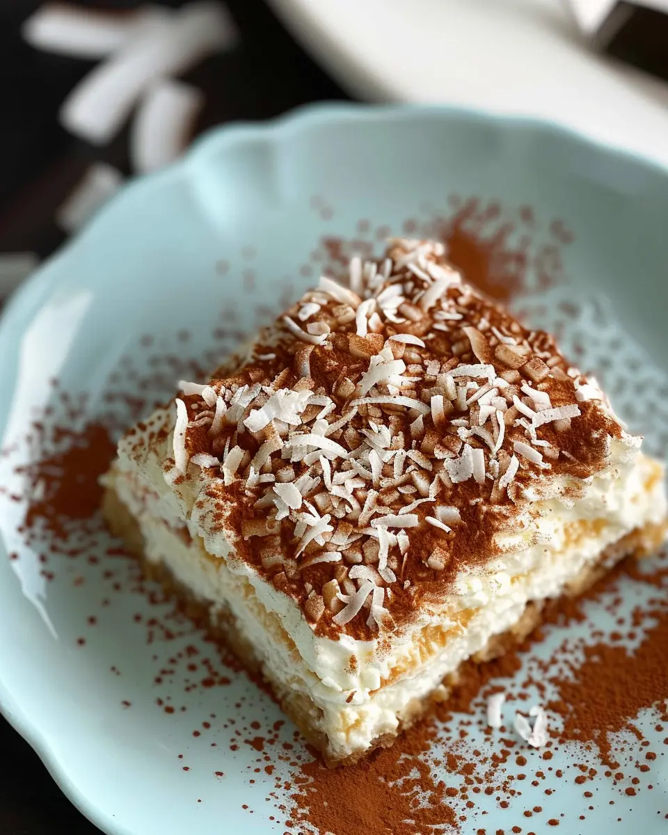 Indulge in the rich, creamy flavors of Coconut Rum Coquito Tiramisu, a delightful twist on the classic Italian dessert!