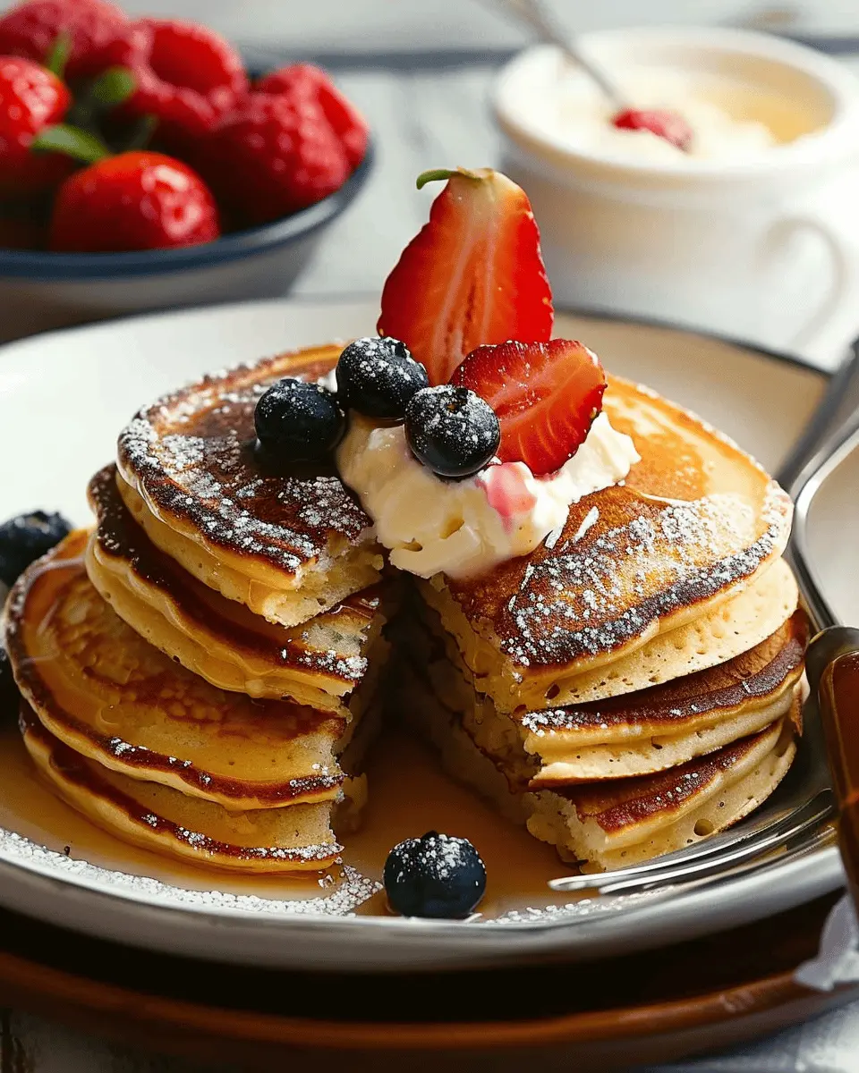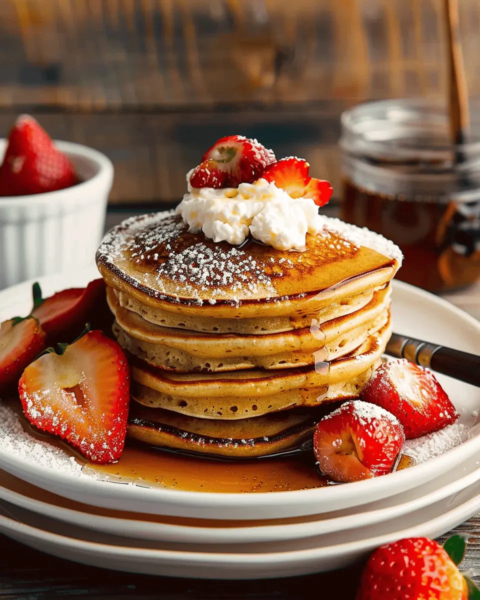 So, if you’re looking to impress at brunch or just want a comforting solo breakfast, these pancakes can quickly become a staple in your morning routine. You can pair them with sides like turkey bacon, chicken ham, or fresh fruit for a delightful meal that checks all the boxes.