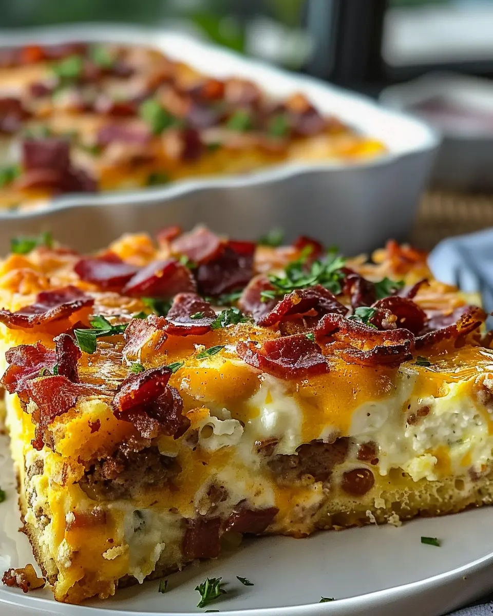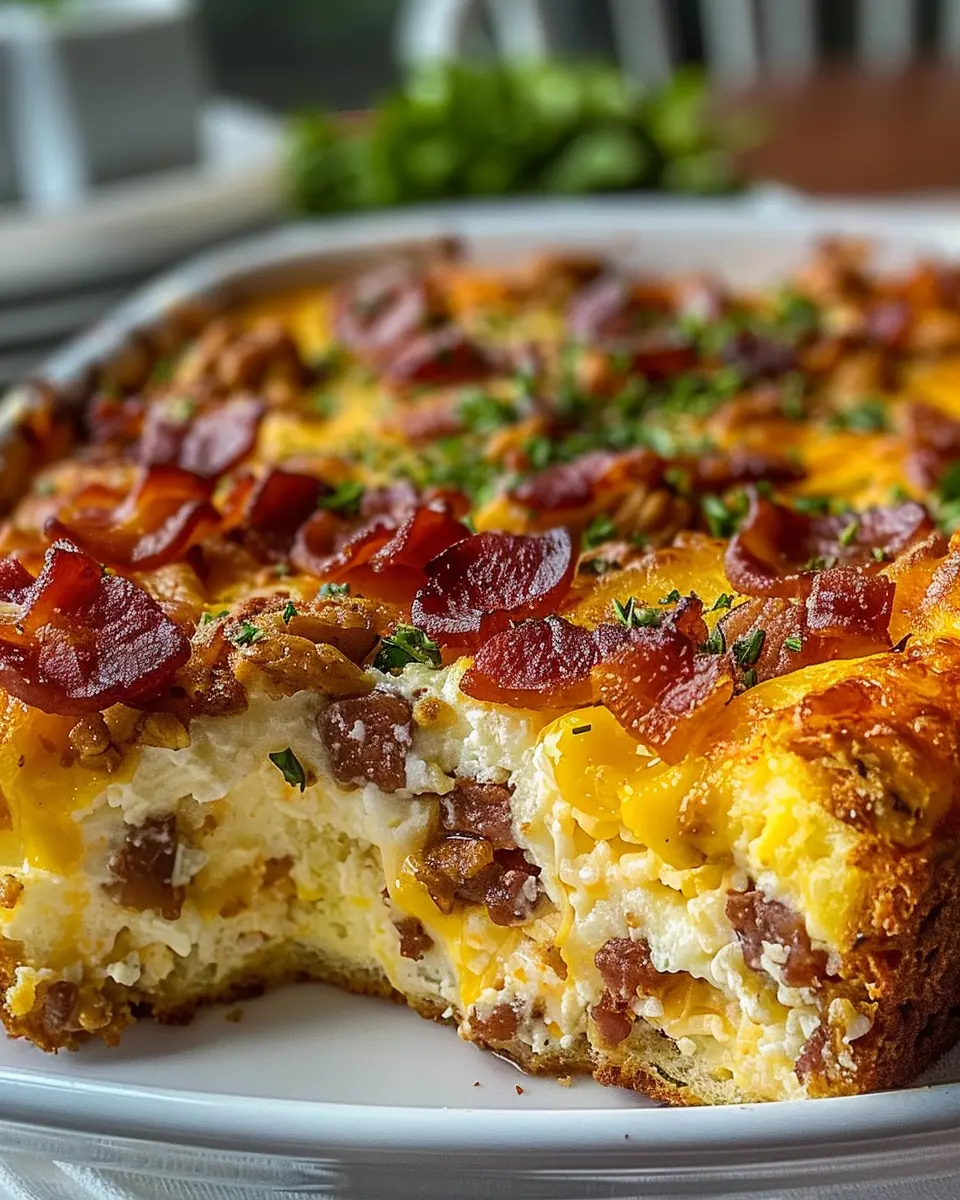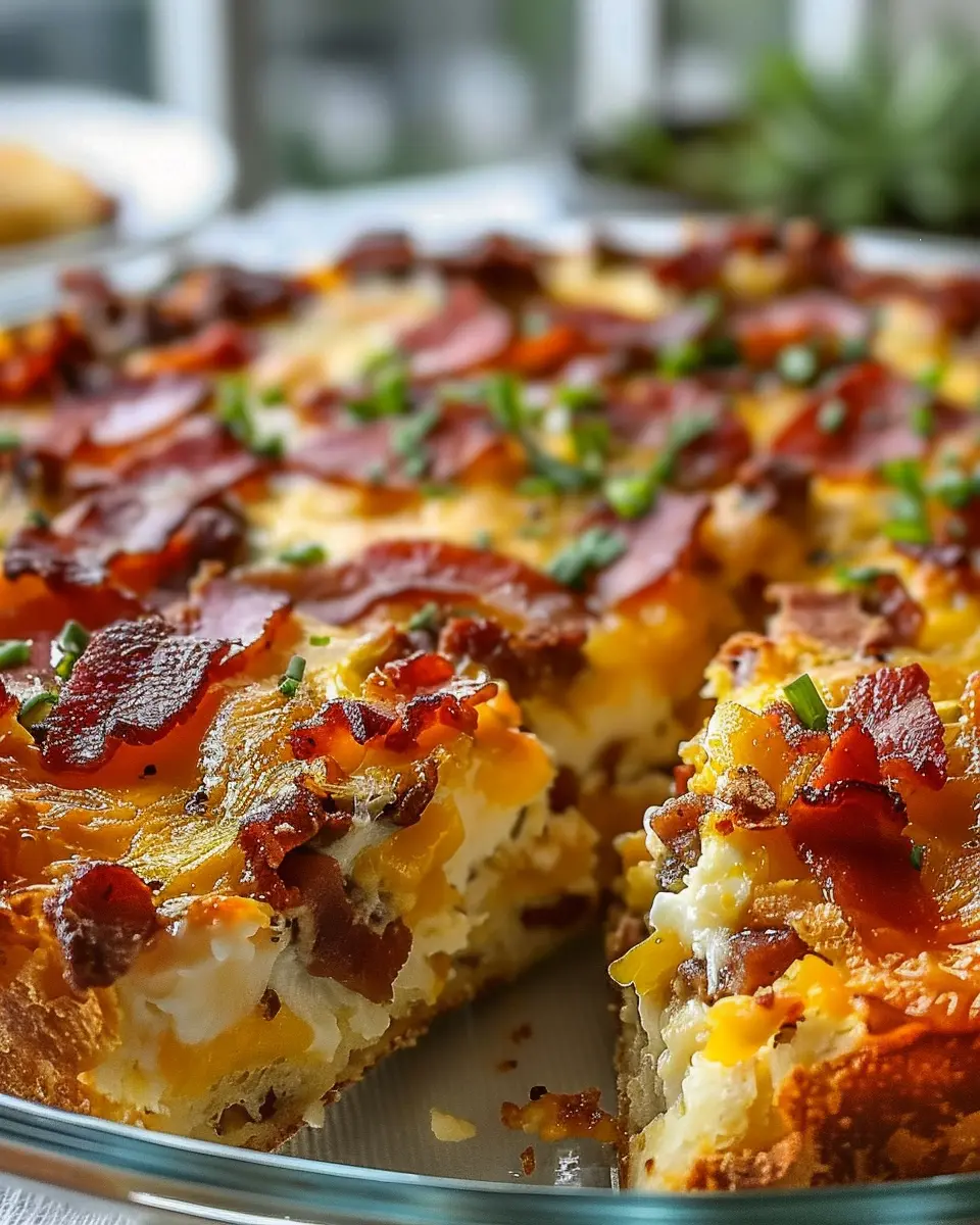 This delicious Crack Breakfast Casserole is packed with flavor and features turkey bacon and chicken ham, making it a perfect brunch dish.