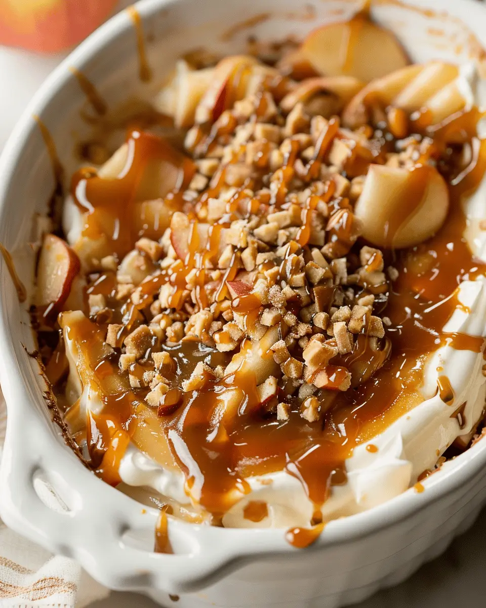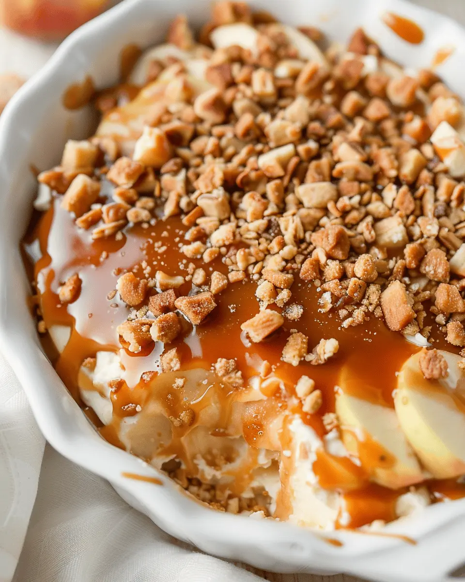 What’s amazing about this step is that you can customize it! If you love extra caramel or toffee, feel free to pile it on. This dip is all about indulgence, and you deserve it!