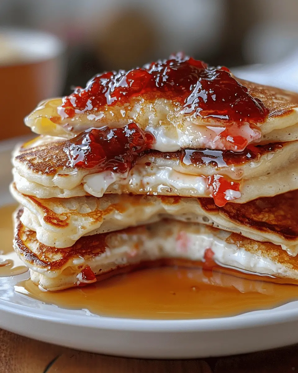 These Cream Cheese Jam Pancakes are the perfect way to start your day with a sweet and indulgent treat.