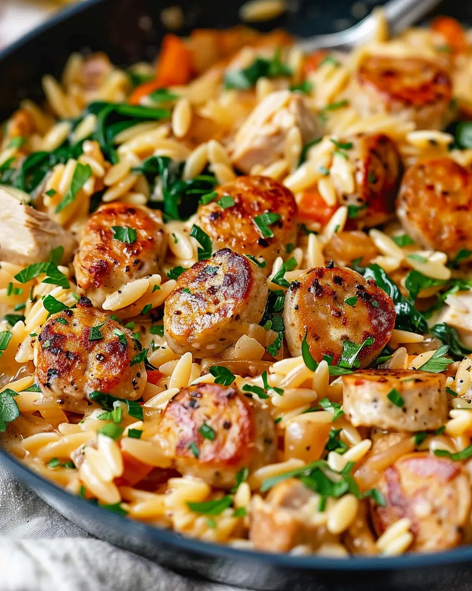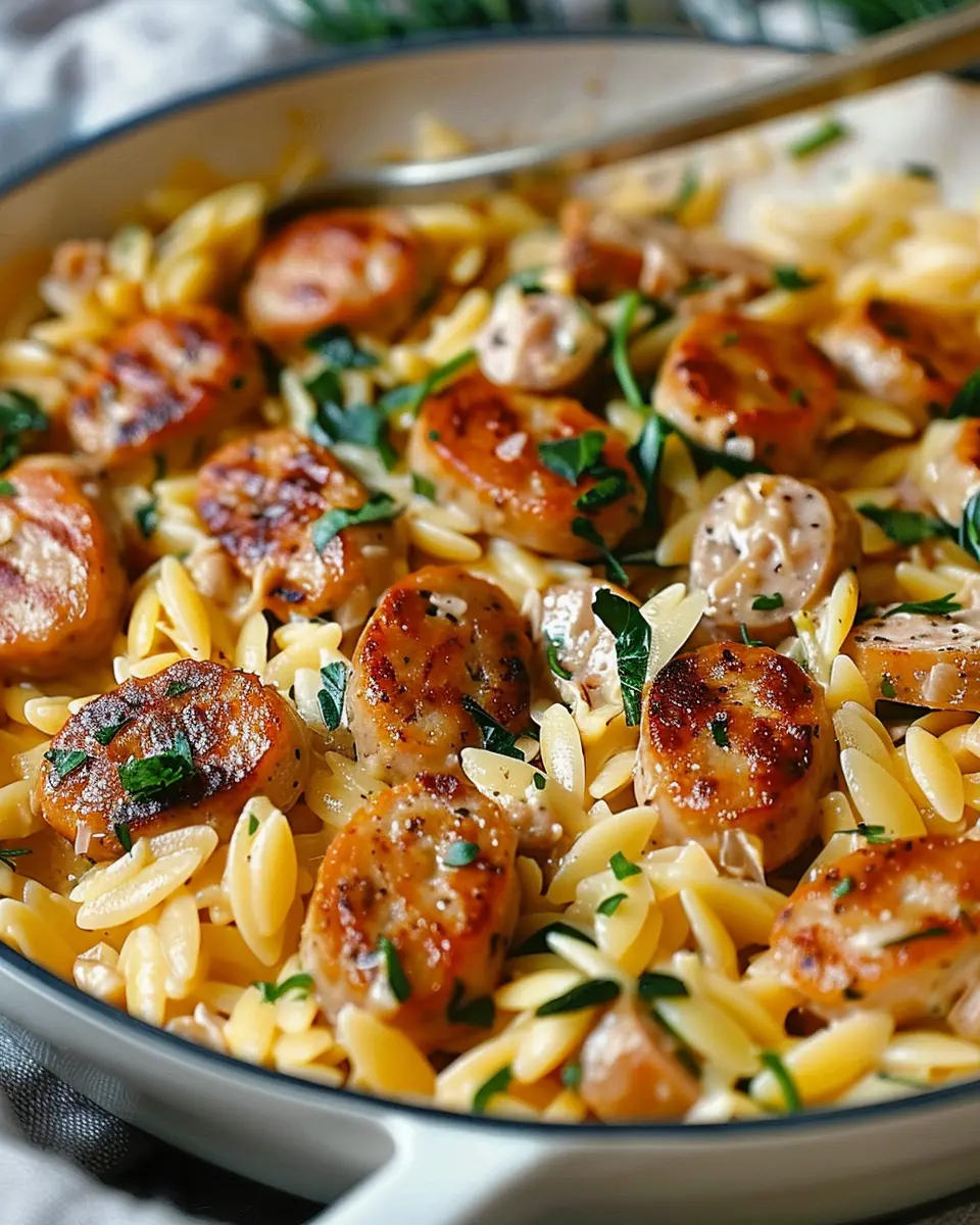 PrintCreamy Chicken Sausage Orzo: An Easy One-Pan Delight for Dinner
