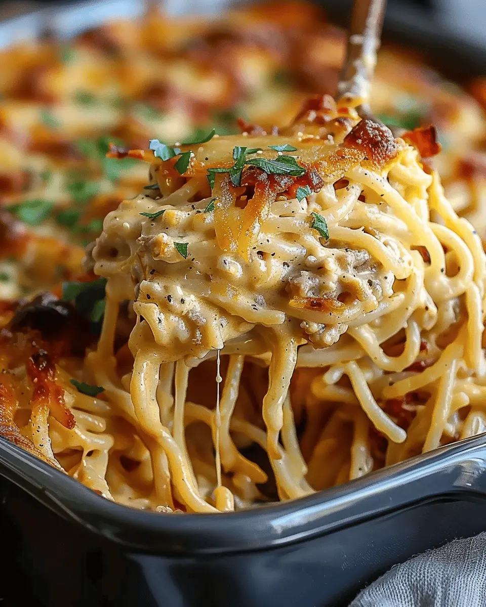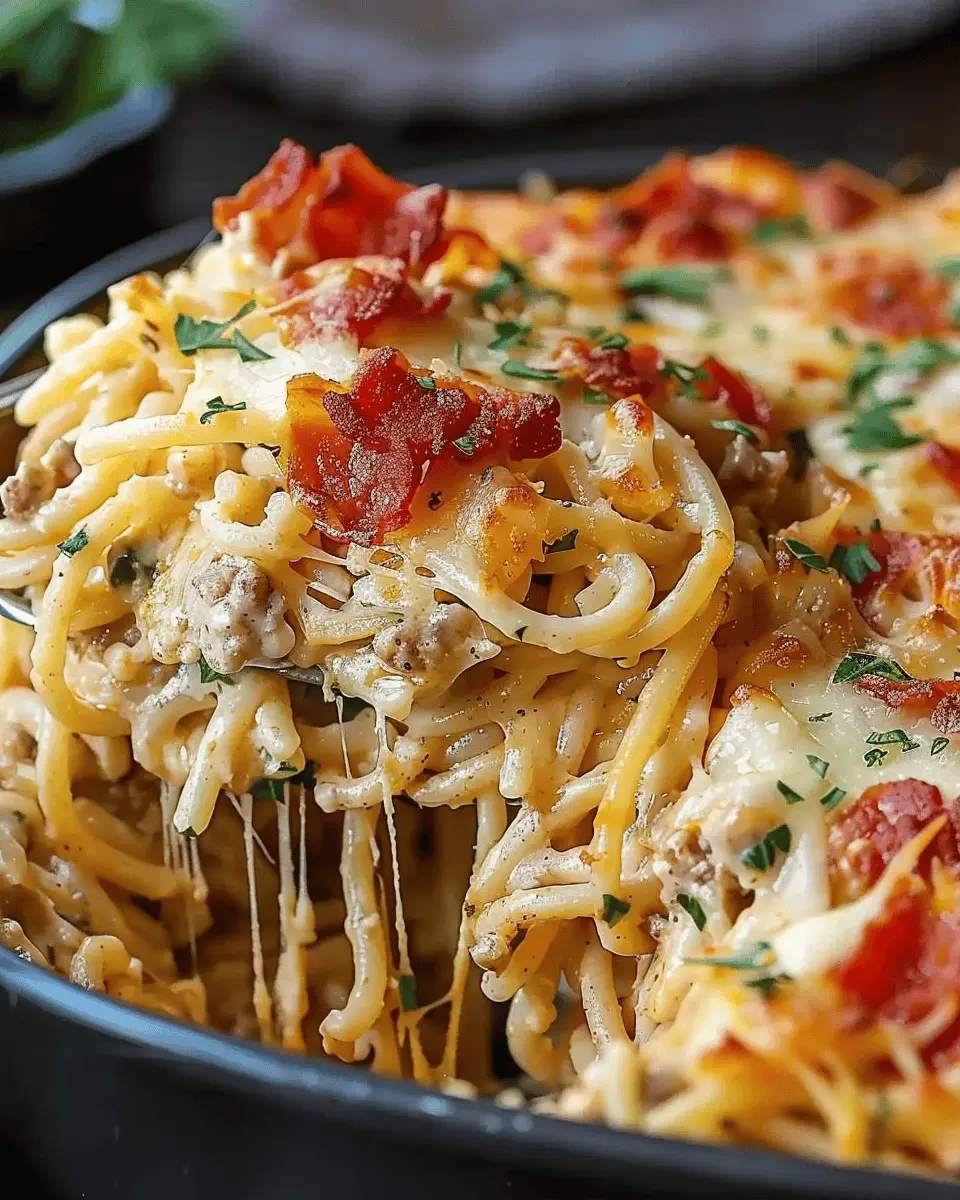As we wrap up our exploration of the creamy southern spaghetti bake, I truly hope you feel inspired to bring this comforting dish to your kitchen. The layers of flavors—from the creamy cheese to the savory turkey bacon and chicken ham—create a mouthwatering experience that’s perfect for gatherings or a cozy night in.