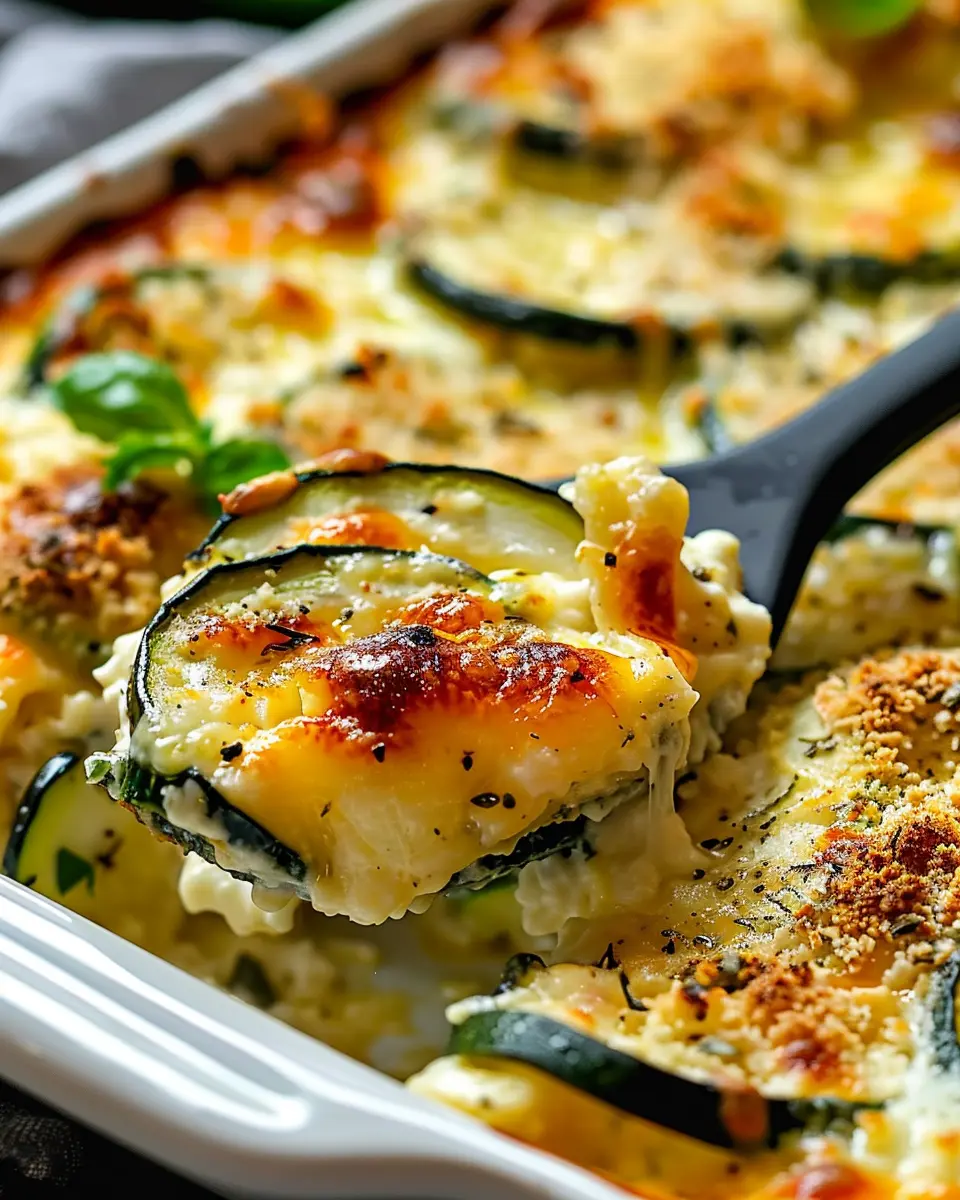 • Repeat the layers with the remaining zucchini and cheese mixture. Make sure to finish with a final sprinkle of Parmesan cheese for that golden crust.
