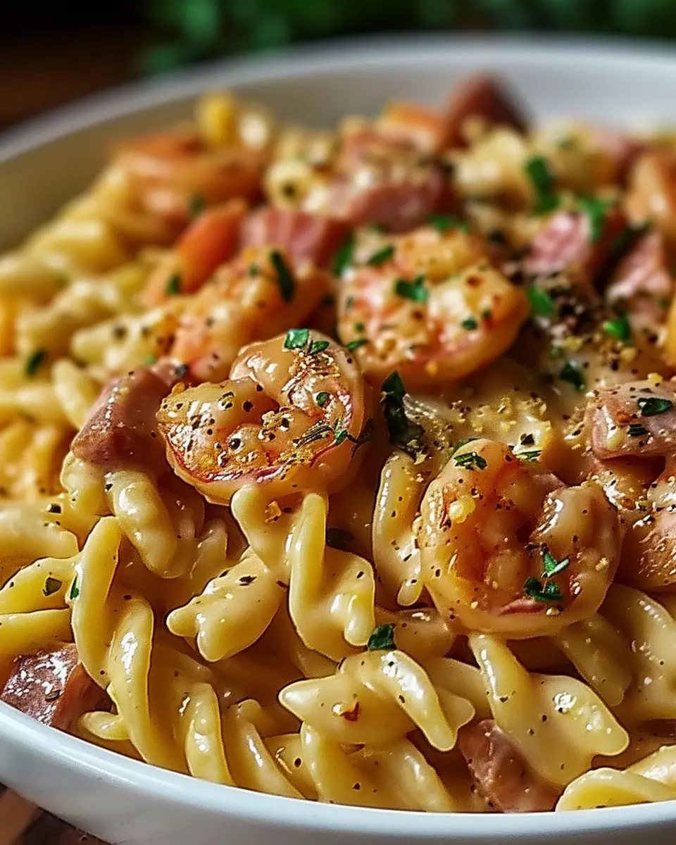 This dish showcases the rich, diverse flavors of Cajun cooking—and the best part? It’s adaptable! Whether you’re cooking for a cozy dinner party or just wanting to pamper yourself after a long workweek, this pasta is a surefire crowd-pleaser. Not to mention, with its mouthwatering combination of Turkey Bacon, Chicken Ham, and tender beef, you’ll be savoring every bite.