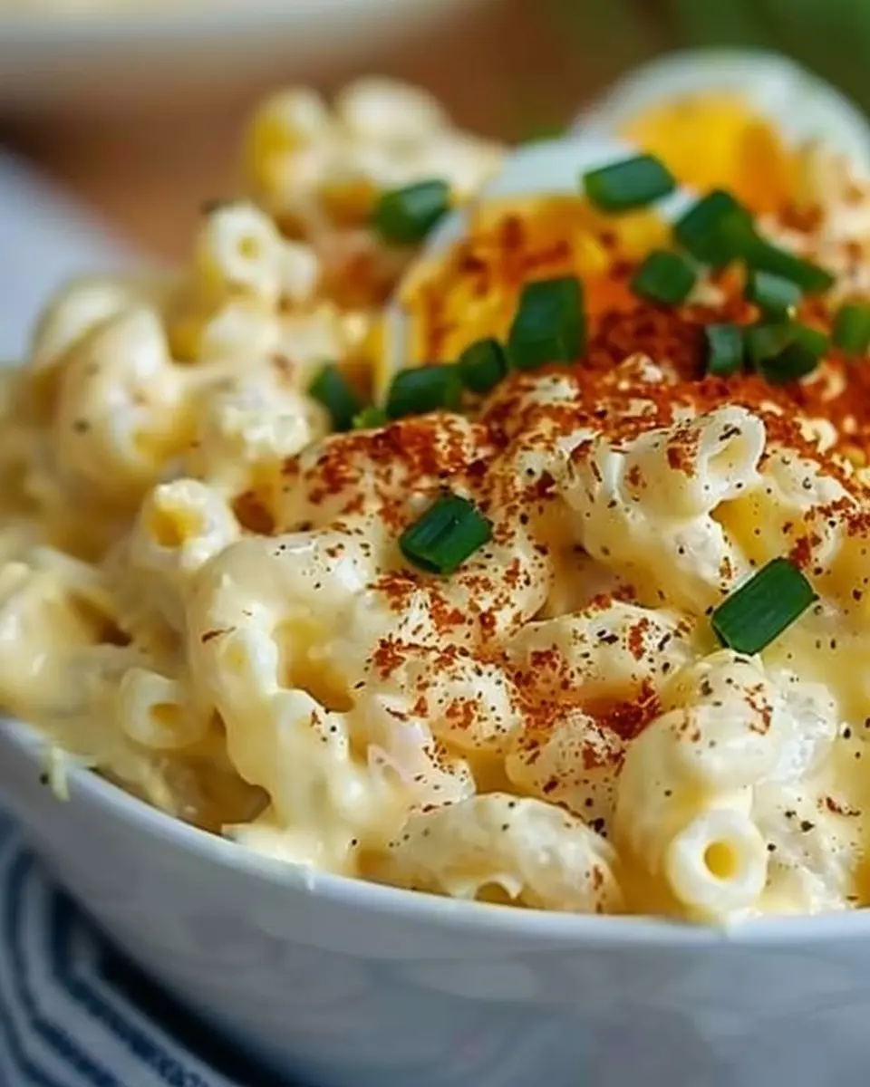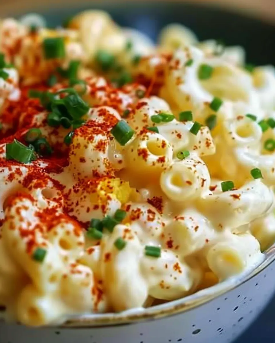 Flavor Explosion: The combination of creamy mayonnaise, mustard, and spices—like paprika—reinvents the traditional macaroni salad. When you add in the rich, savory notes of deviled eggs, it creates a dish that’s simply mouthwatering.