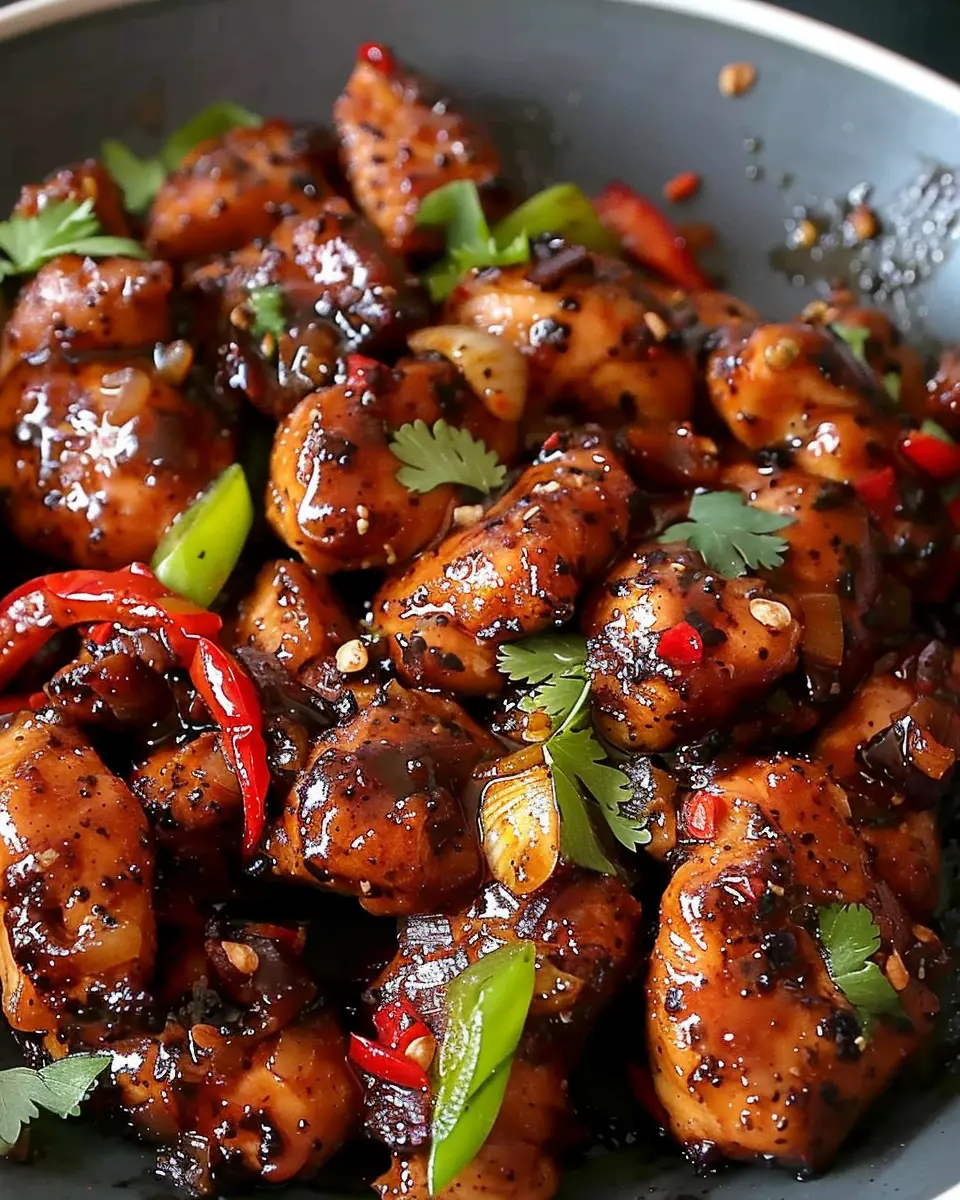 A spicy and savory black pepper chicken dish that is easy to prepare and full of flavor.