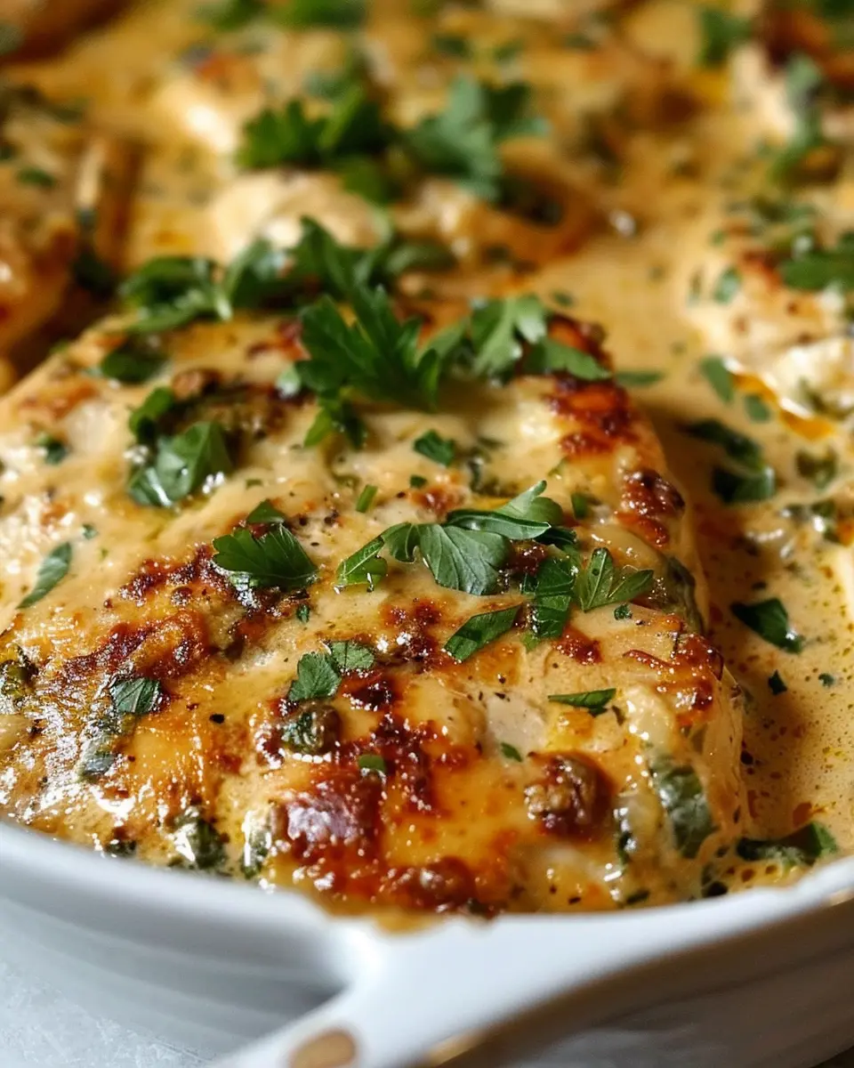 - Assemble the dish: Place the seared chicken in a baking dish. Pour the cream cheese sauce evenly over the chicken, ensuring every piece is well coated.
