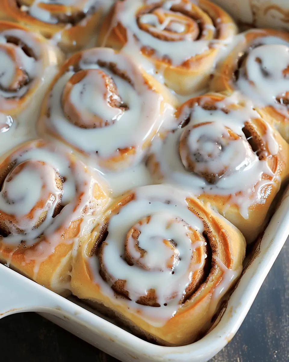 9. Drizzle icing over warm cinnamon rolls and serve.