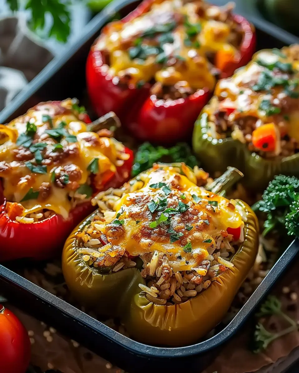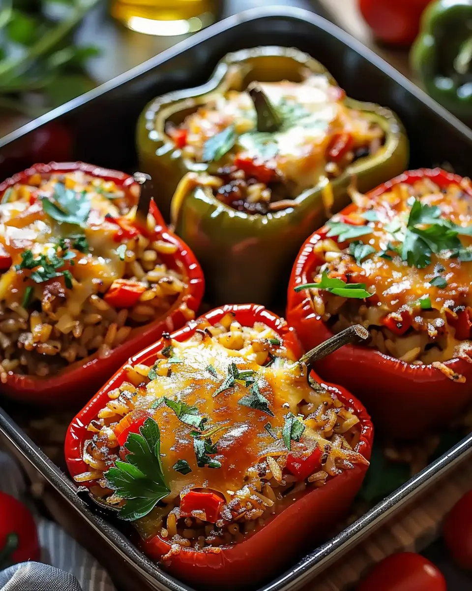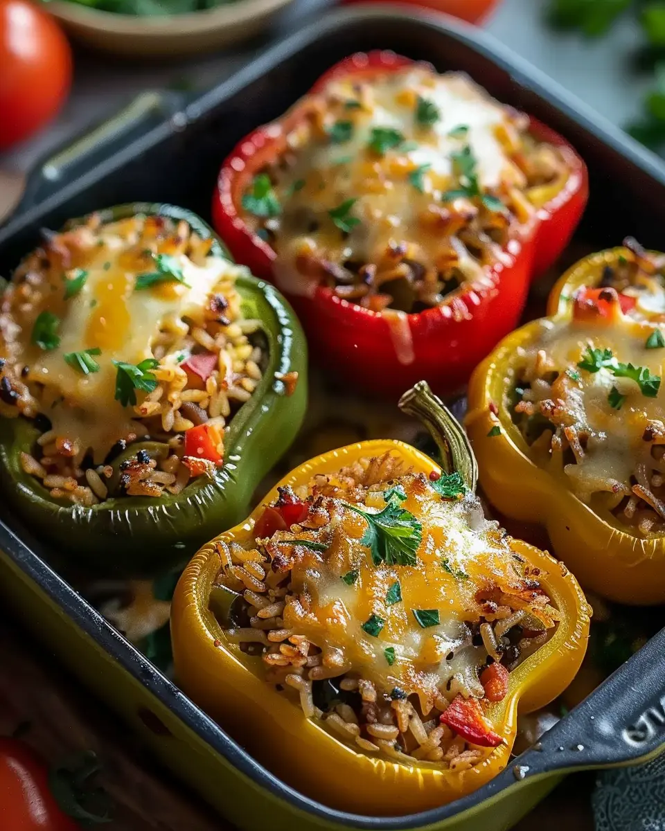 A delicious and healthy recipe for stuffed bell peppers filled with rice and vegetables.