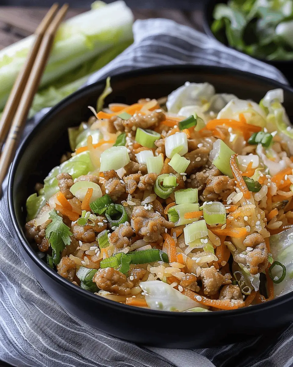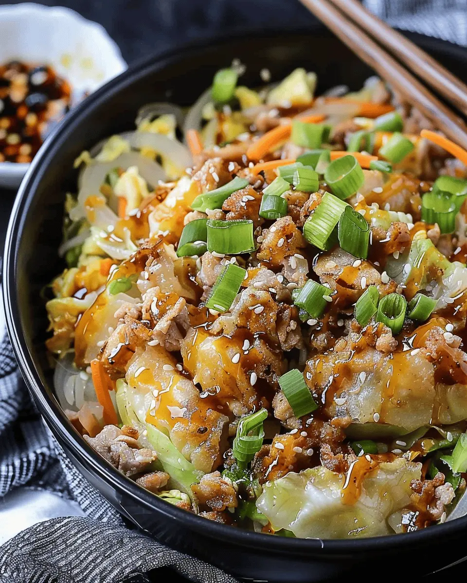 Egg Roll in a Bowl is a delightful and easy-to-make dish that combines the best of traditional egg rolls into a healthy, low-carb meal. This one-pan wonder is perfect for busy weeknights or when you want something delicious without spending hours in the kitchen. Let’s walk through the preparation steps to make your very own Egg Roll in a Bowl!