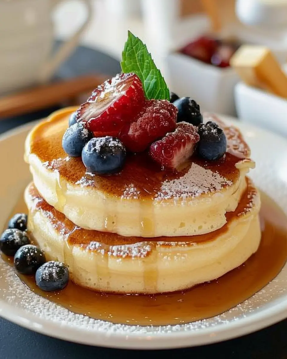 What sets these pancakes apart is not just their appearance but the experience they provide. The moment you dig in, you’re met with a pillowy softness that feels almost ethereal. Top them with whipped cream, fresh fruits, or even a drizzle of maple syrup, and you have a breakfast that’s as much a feast for the eyes as it is for the taste buds.