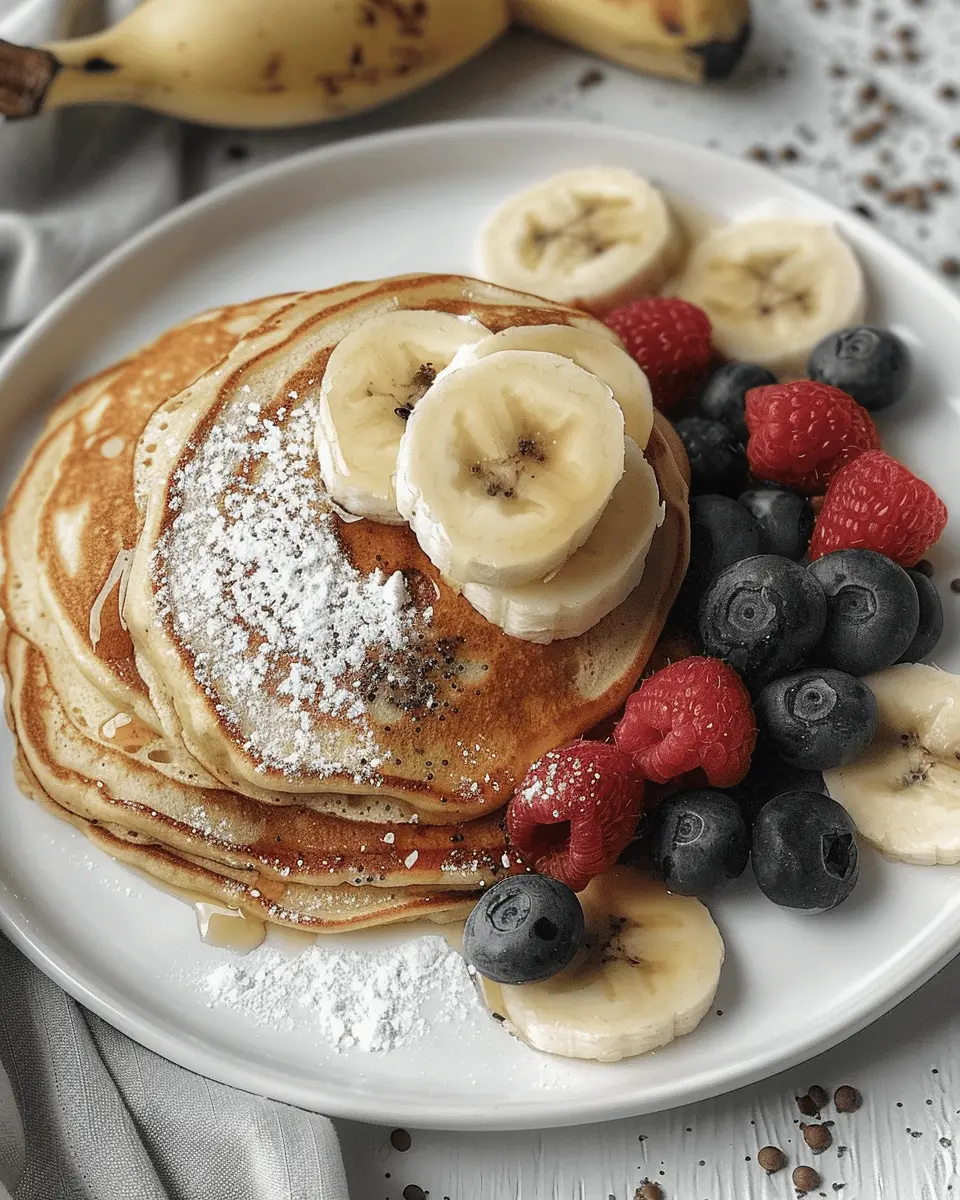 These ingredients combine to create fluffy pancakes that are not only satisfying but also packed with protein, perfect for those busy mornings.