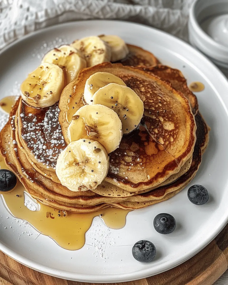 To round out your breakfast, consider pairing these pancakes with tasty side dishes. Turkey bacon or chicken ham make for a great protein-rich option, balancing out the dish. You might also consider a side of Greek yogurt topped with honey and nuts for added crunch and creaminess.