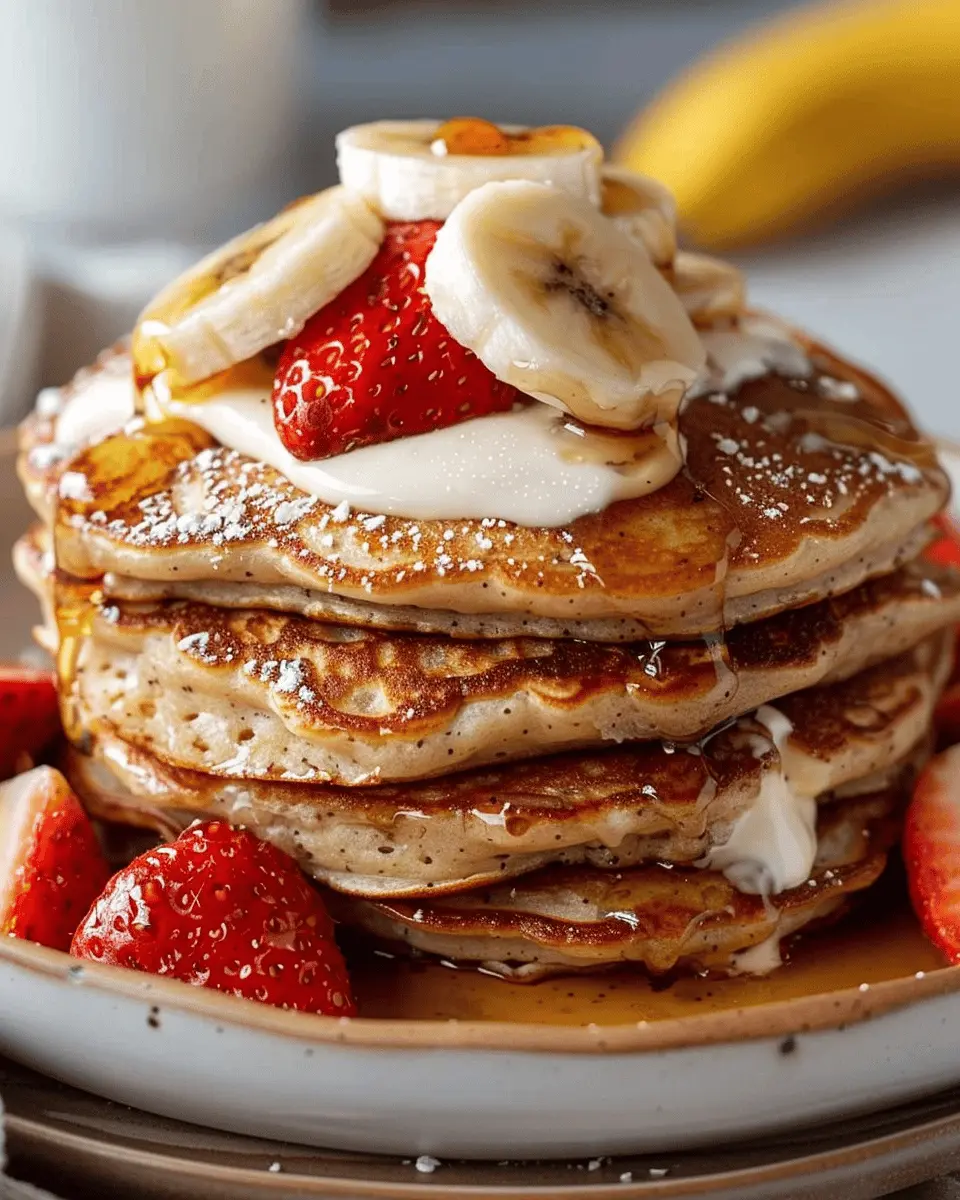 Now, if you’re looking to really elevate those fluffy banana oat pancakes, think beyond the usual. A dollop of Greek yogurt can add creaminess and a dose of protein, while a sprinkle of cinnamon brings warmth and spice. You could also try crushed nuts—walnuts or pecans for crunch—paired with a dollop of almond butter for a rich texture.