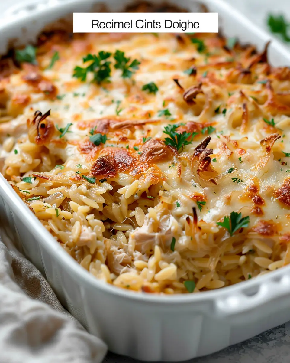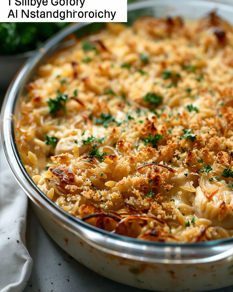 A delightful French onion chicken orzo casserole that combines comfort food with ease.