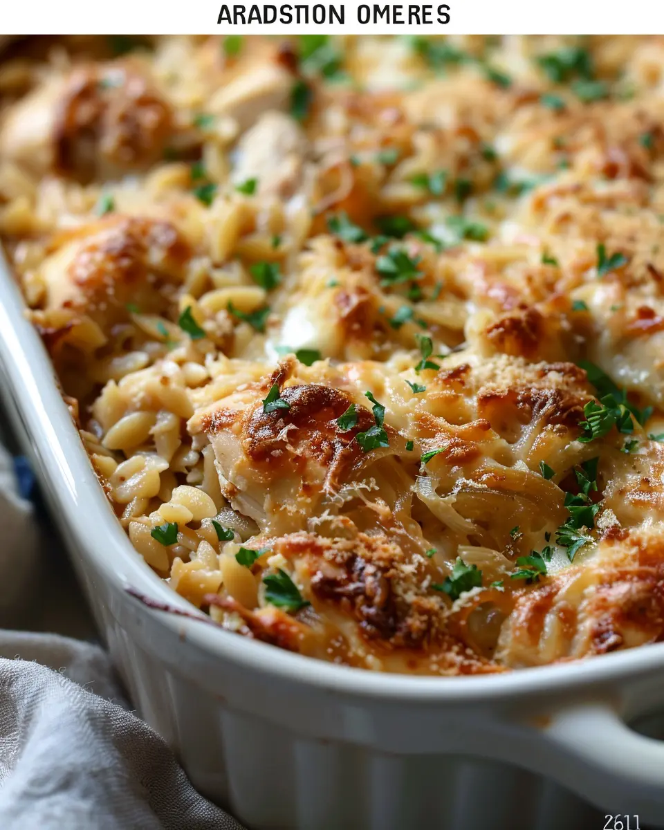 Introduction to French Onion Chicken Orzo Casserole