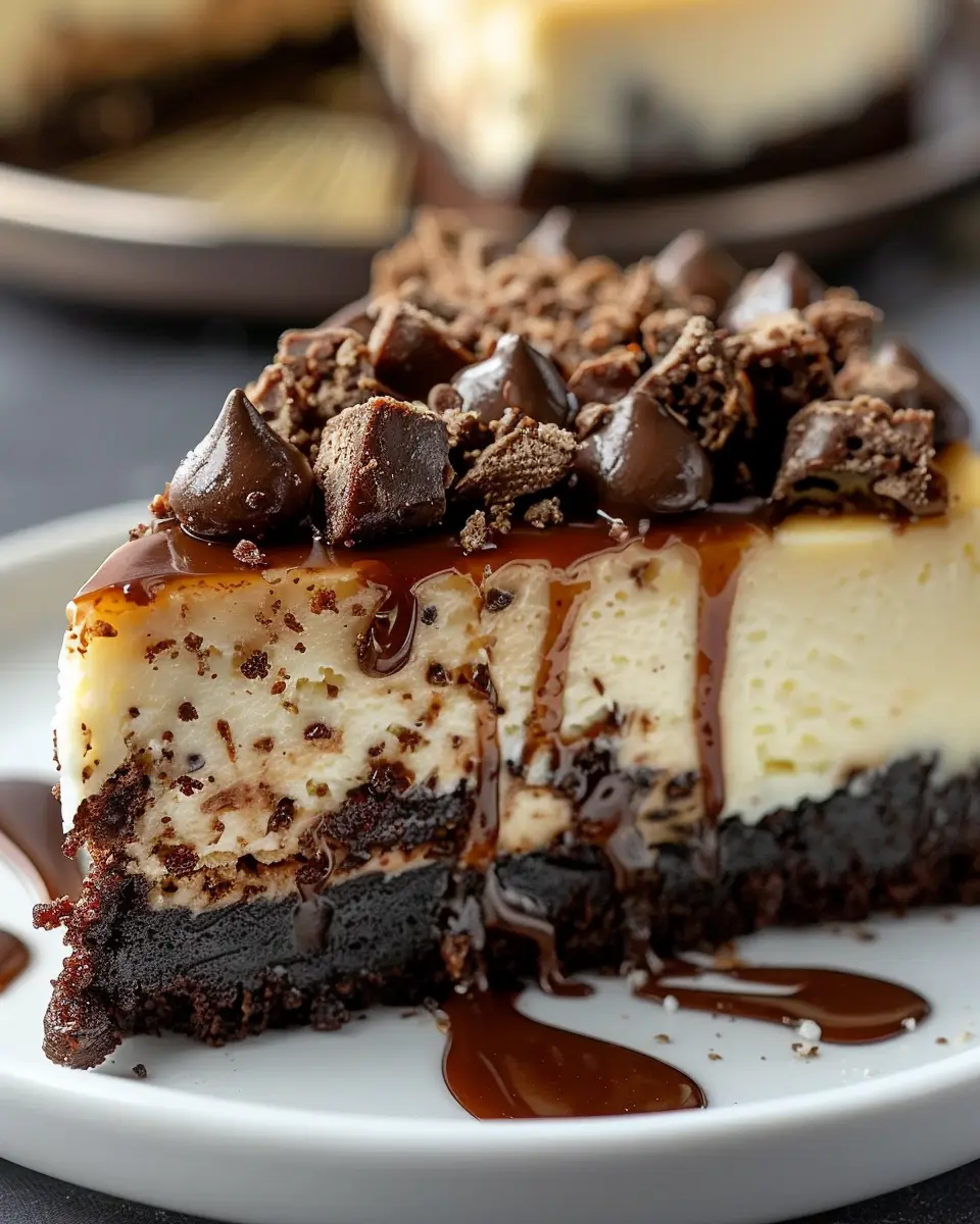 Indulge in the rich combination of fudgy brownie and creamy cheesecake with this delicious recipe.
