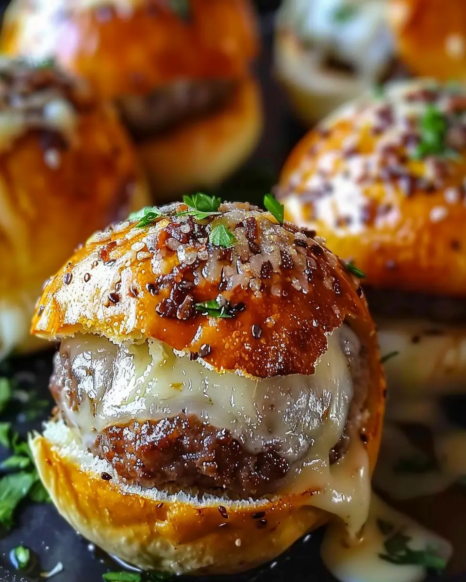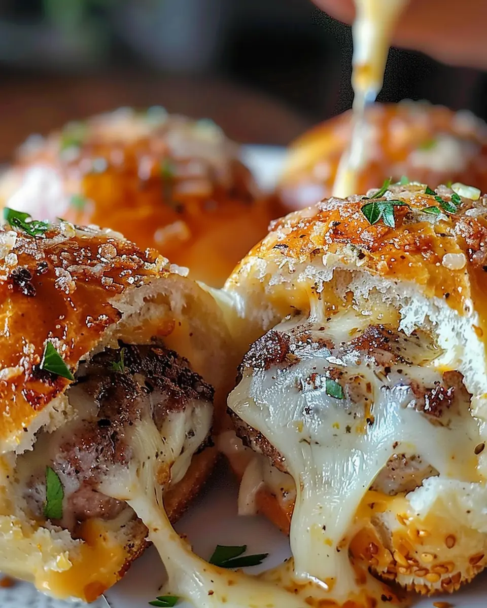 Experience the mouthwatering combination of garlic and parmesan in these delicious cheeseburger bombs that are sure to impress your guests.