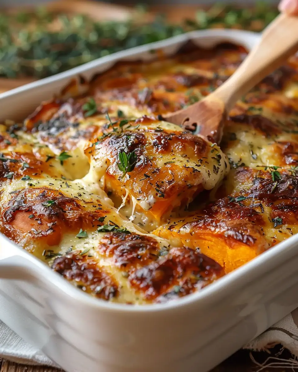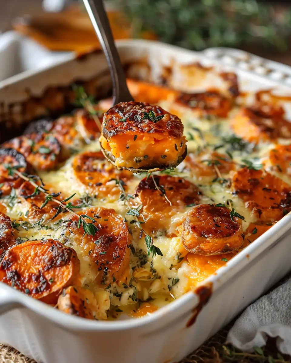 PrintGarlic Scalloped Sweet Potatoes: Indulgent Comfort Food Recipe
