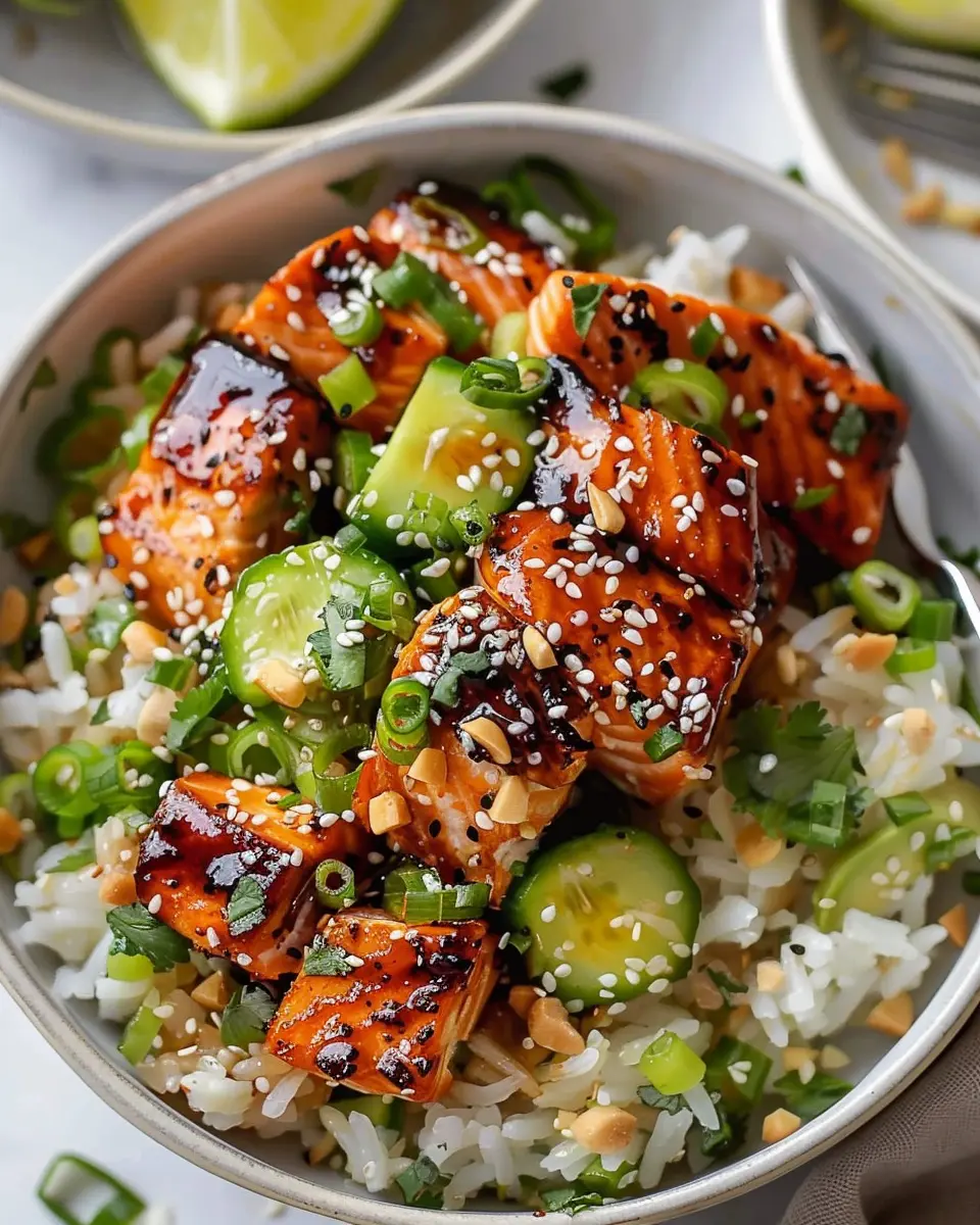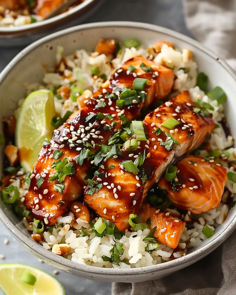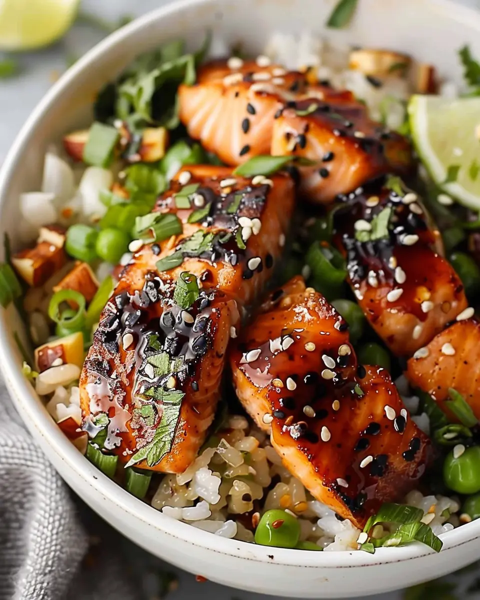 PrintHoney Glazed Salmon Rice Bowls: Easy Recipe for Delicious Meals