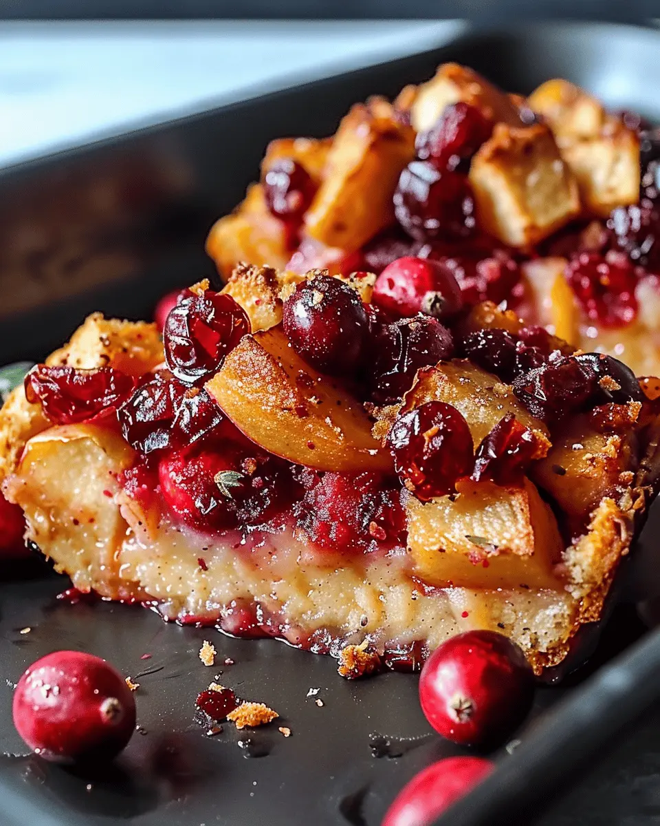 Experience the rich flavors of fall with this delightful twice-baked sweet dish incorporating cranberries and apples.