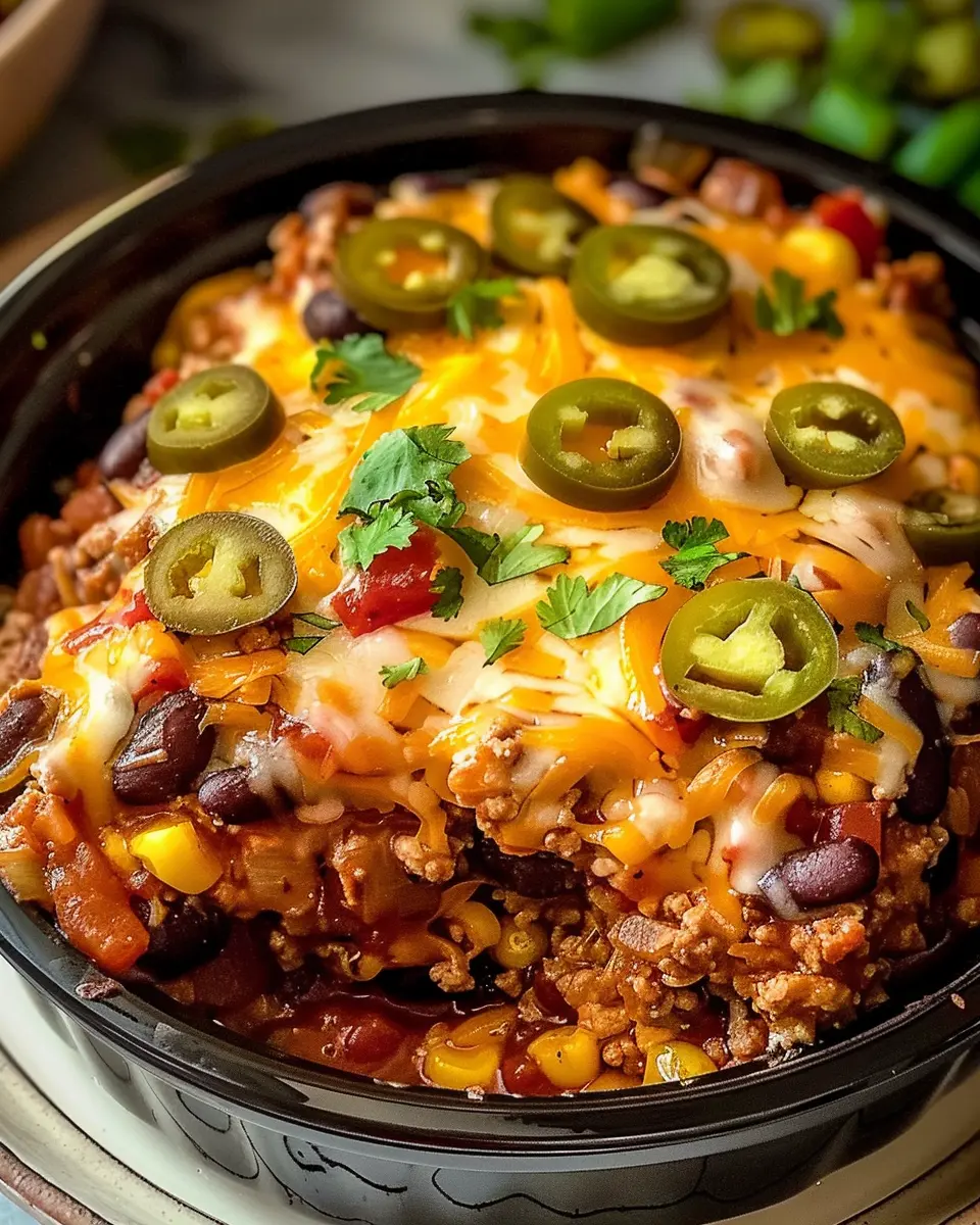PrintIrresistible Slow Cooker Taco Casserole Delight with Turkey Bacon