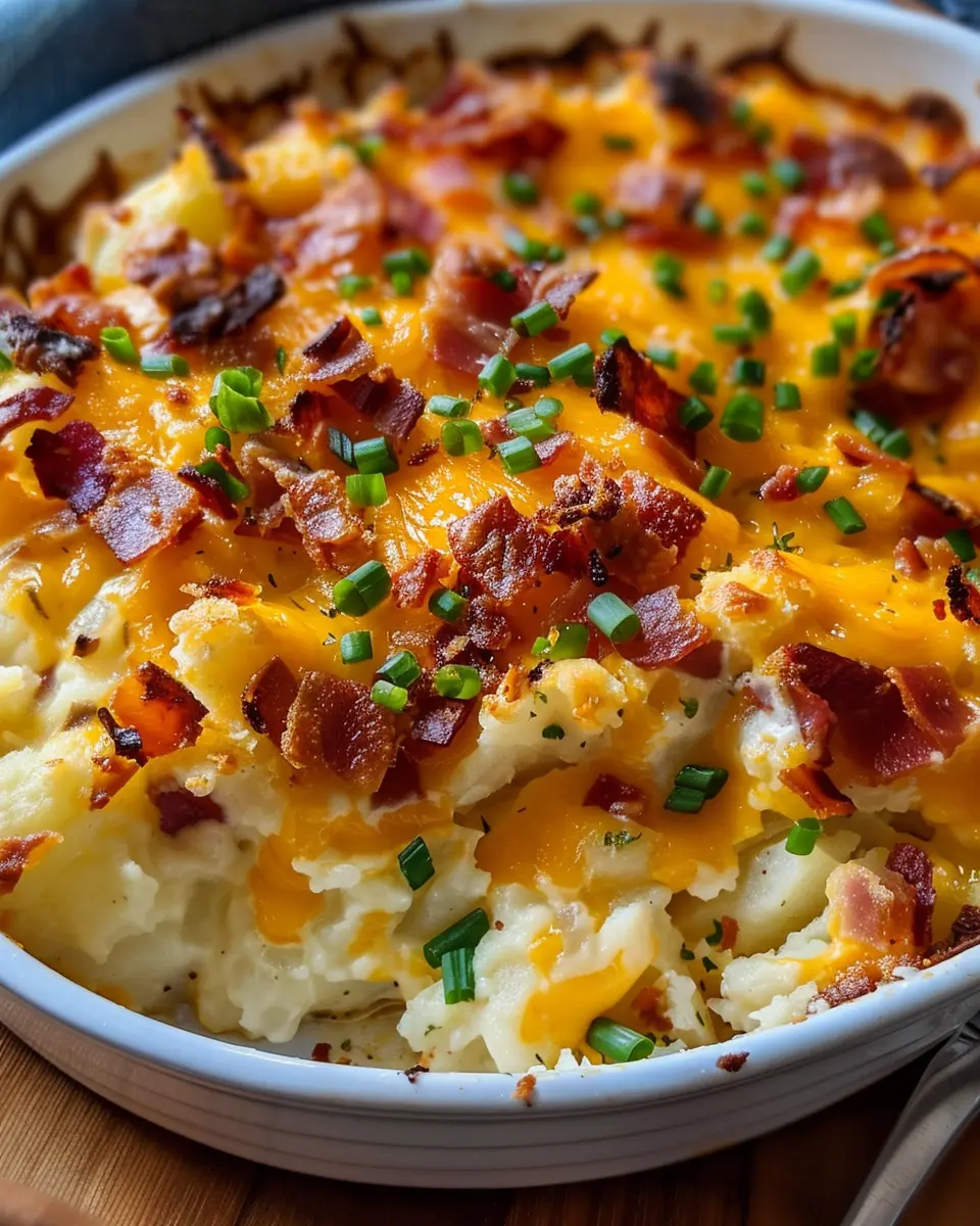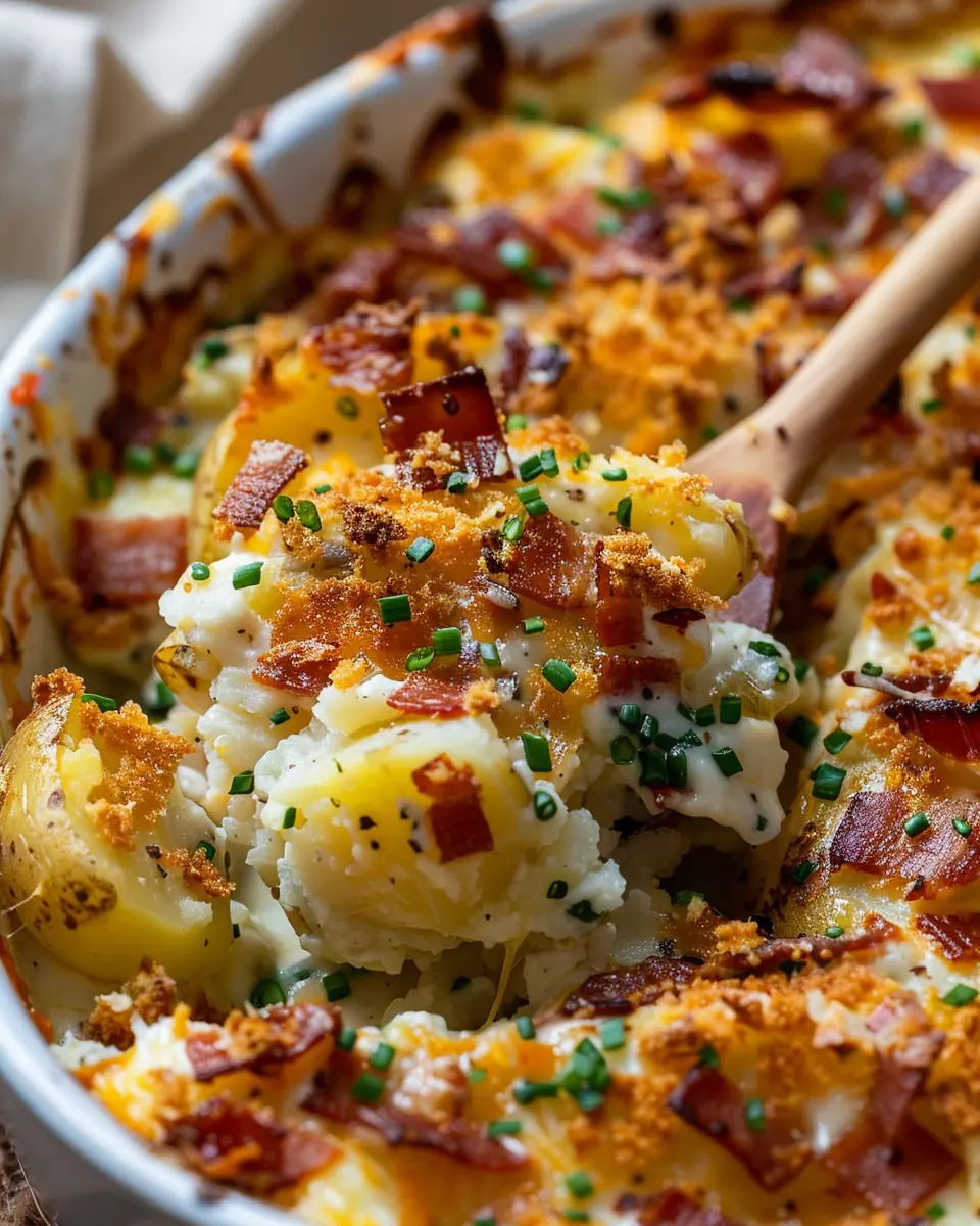 Loaded Baked Potato Casserole: Indulgent Comfort Food with Turkey Bacon
