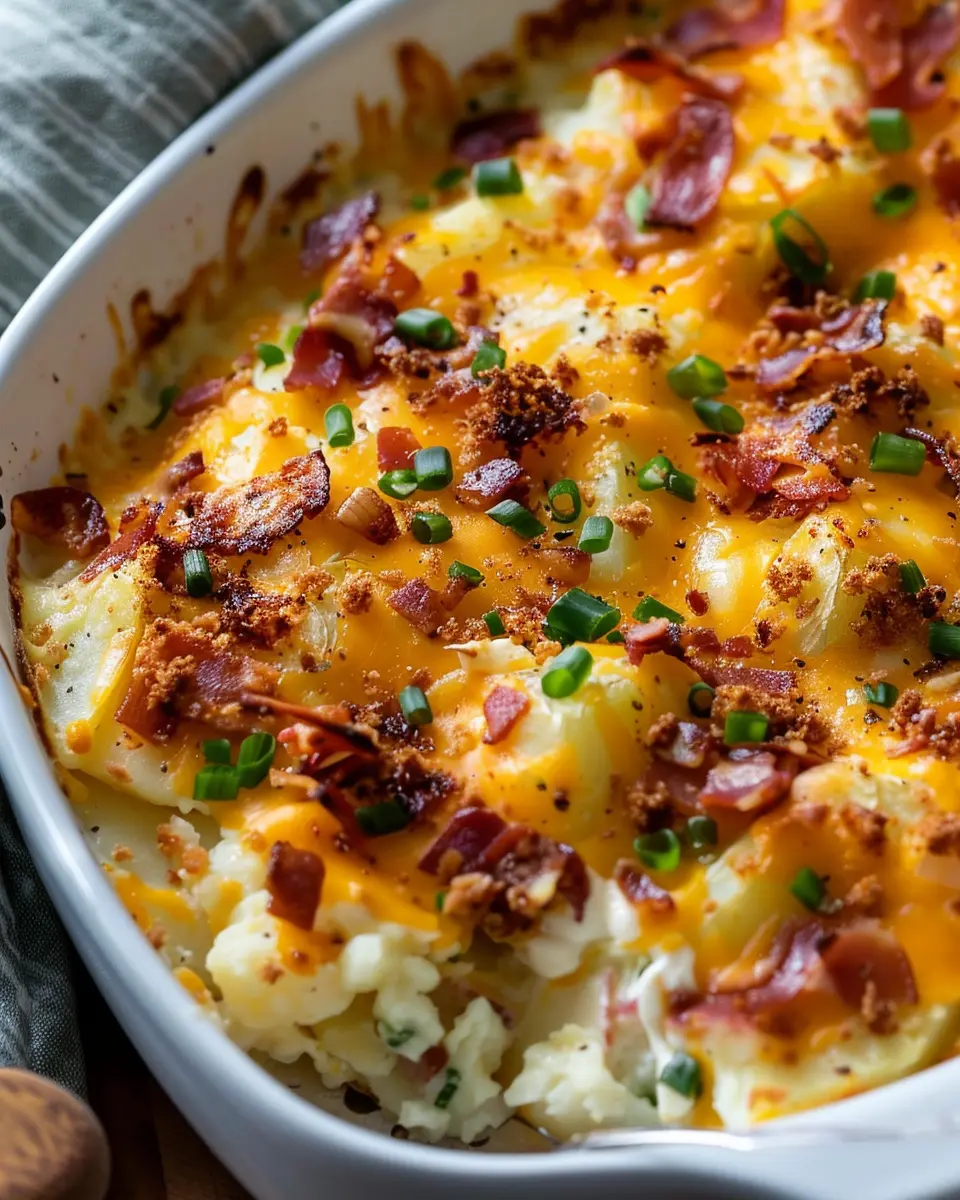 Home » Recipes » Loaded Baked Potato Casserole: Indulgent Comfort Food with Turkey Bacon