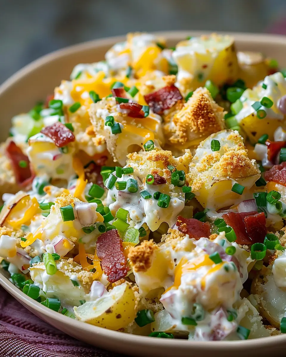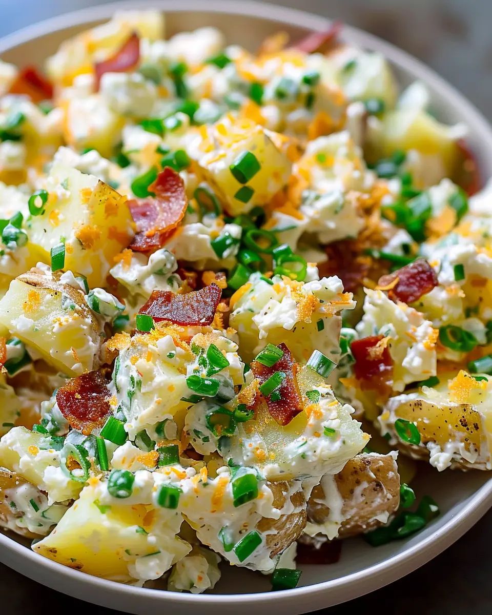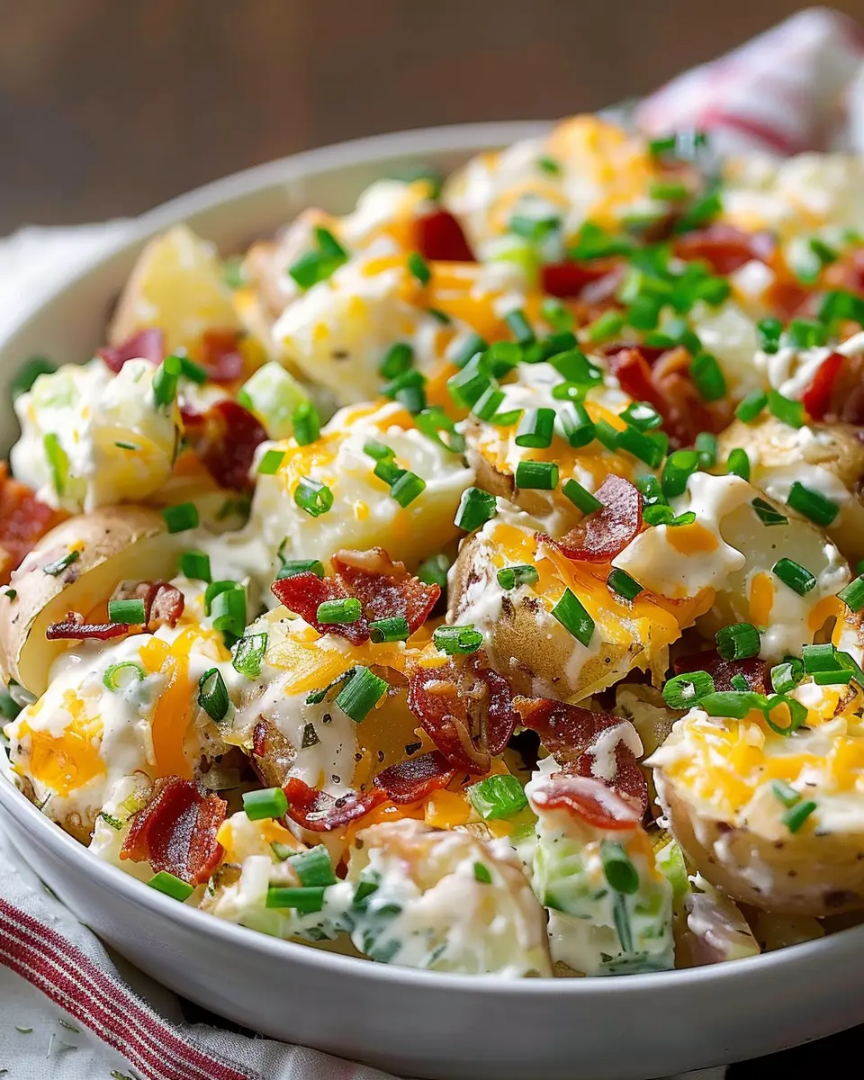 PrintLoaded Baked Potato Salad: A Delicious Twist with Turkey Bacon