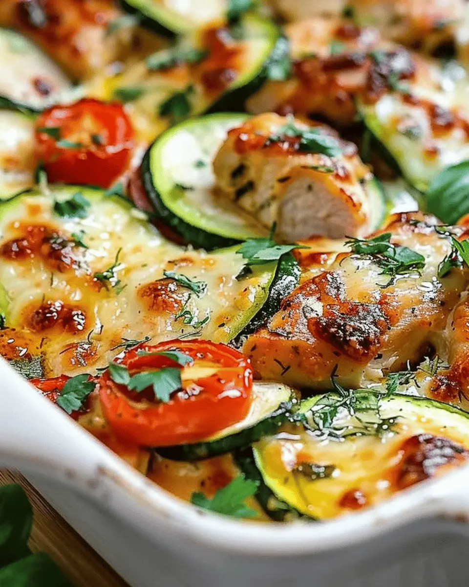 A delicious and nutritious Mediterranean Chicken Zucchini Bake that combines healthy ingredients for a satisfying meal.