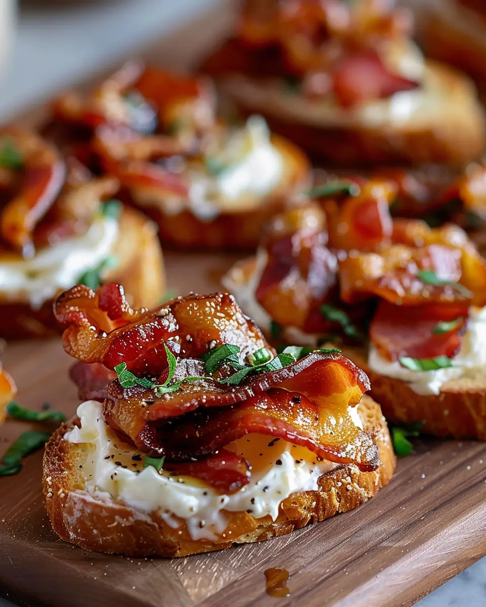 While cream cheese is a classic choice for your Million Dollar Bacon Crostini, don’t hesitate to experiment. Goat cheese brings a tangy flair that balances beautifully with the salty flavors. For a more robust taste, try a sharp cheddar or a nutty Gruyère. If you’re feeling adventurous, a hint of blue cheese can add a bold twist, creating an unforgettable flavor combination.
