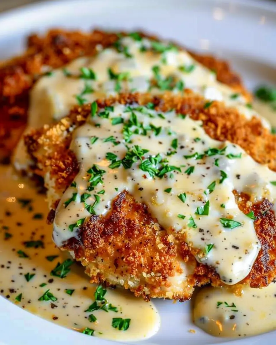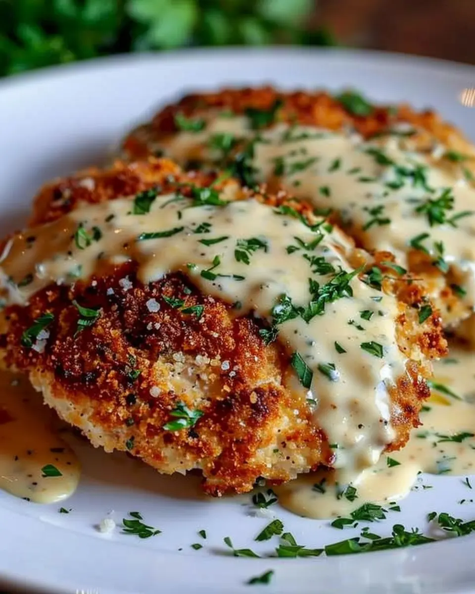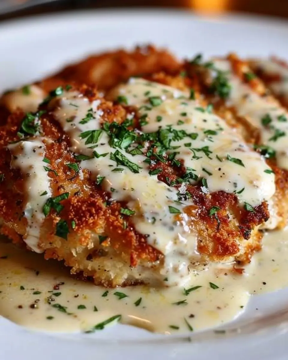 - Ladle the Sauce: Generously pour the creamy garlic sauce over the chicken, ensuring each cutlet is well-coated.