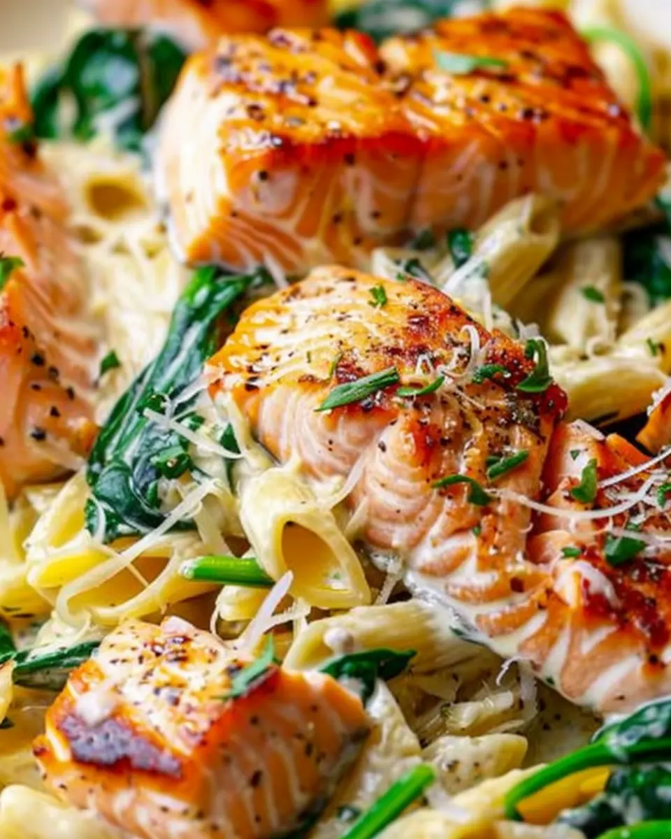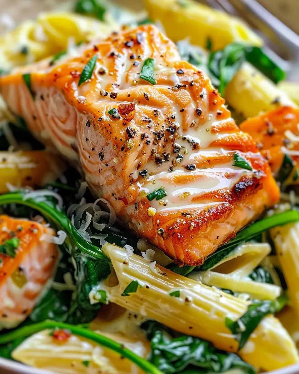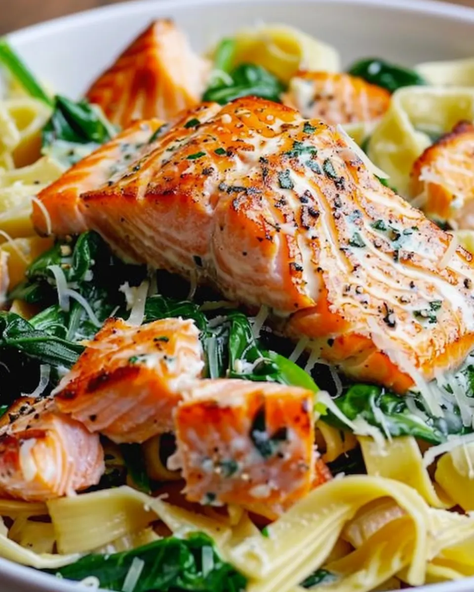 Discover the delightful combination of salmon and spinach in this tasty pasta dish that’s perfect for a nutritious meal.