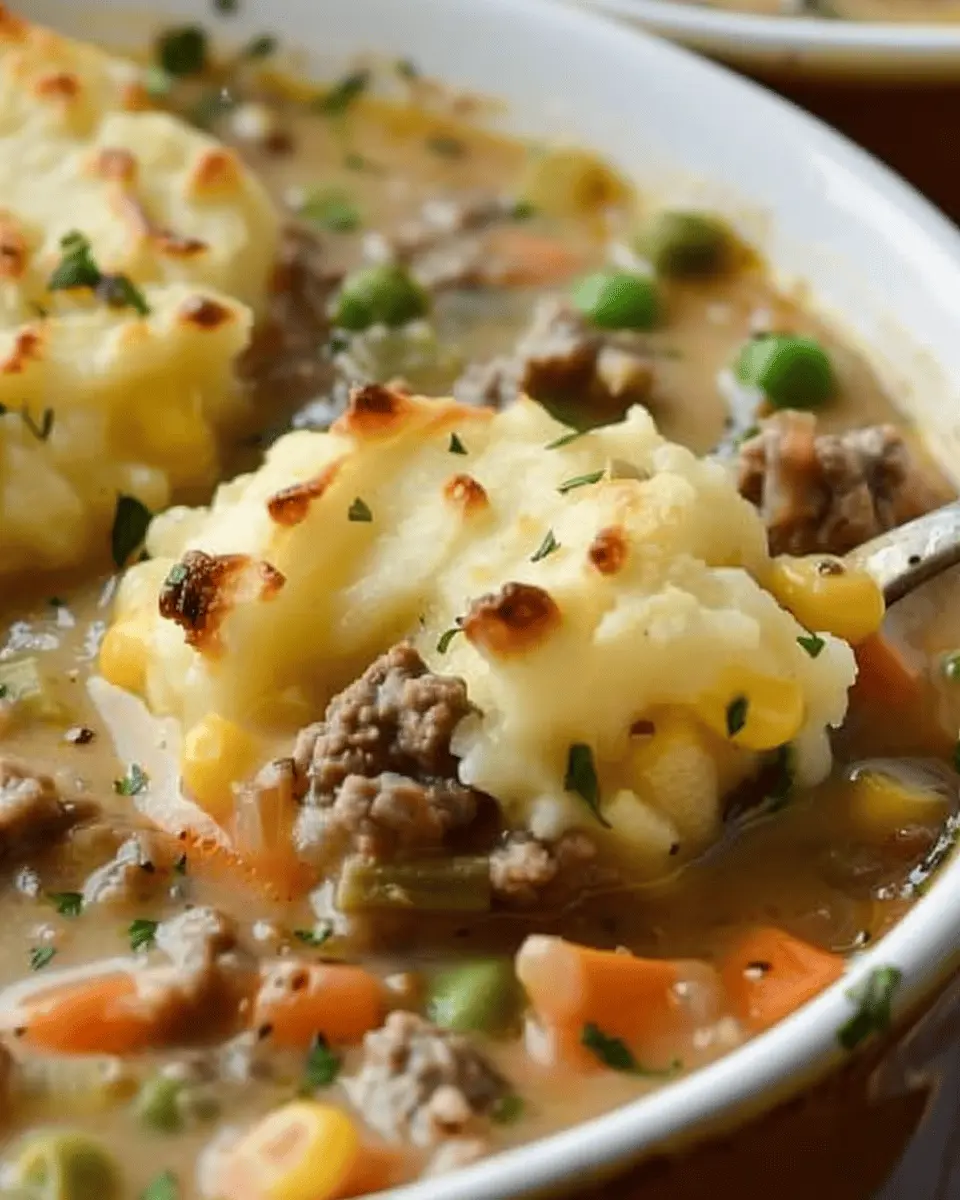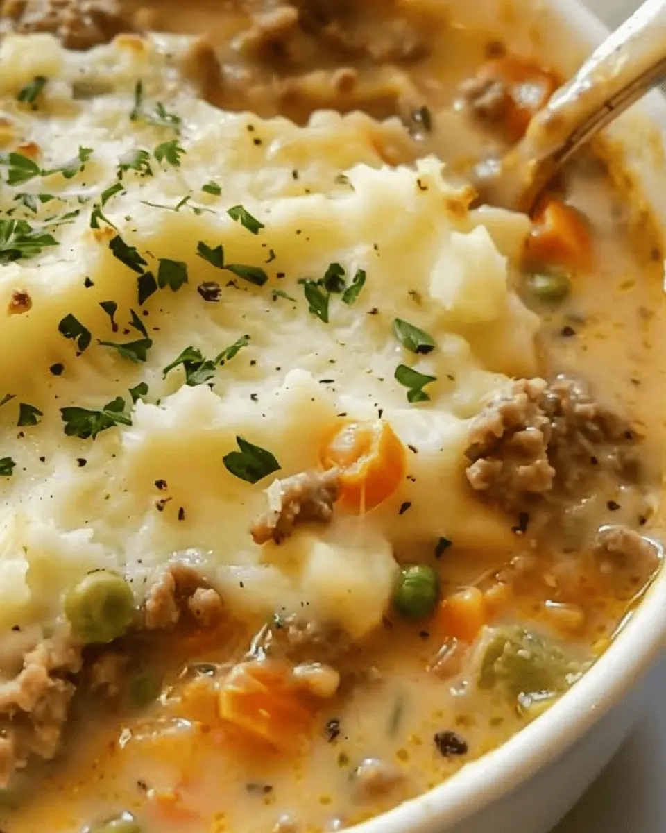 PrintShepherd’s Pie Soup: Indulgent Comfort with Turkey Bacon and Chicken Ham