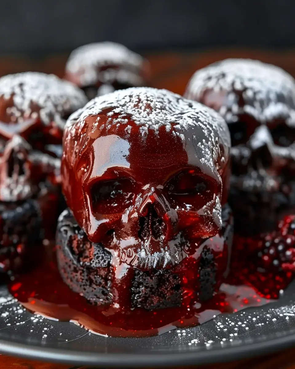 Once they’re out of the oven, allow your skull lava cakes to cool in the molds for about 1-2 minutes. Carefully invert them onto plates—don’t wait too long, or they may stick! Dust with a bit of powdered sugar or top with whipped cream for an elegant finish.