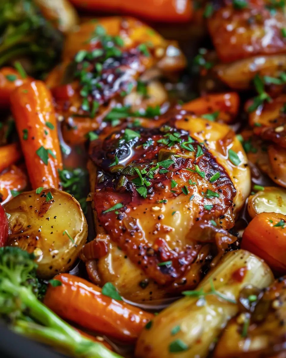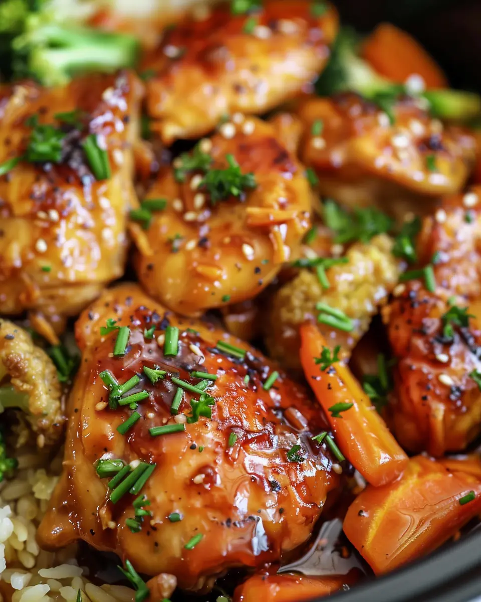 A delicious slow cooker recipe combining honey garlic chicken with fresh veggies for a wholesome meal.