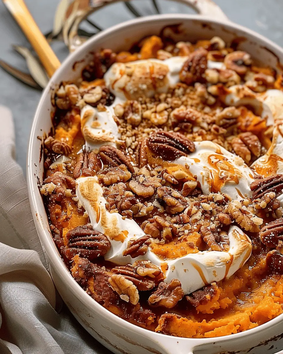 If marshmallows aren’t your thing, you have plenty of delicious alternatives! Consider topping your casserole with pecans, chopped nuts, or even a crunchy topping made from oats, coconut, and brown sugar for added texture. You could also try using a drizzle of maple syrup mixed with crushed graham crackers for that sweet, caramelized twist. This way, you still get that sweet and crunchy experience without traditional marshmallows.