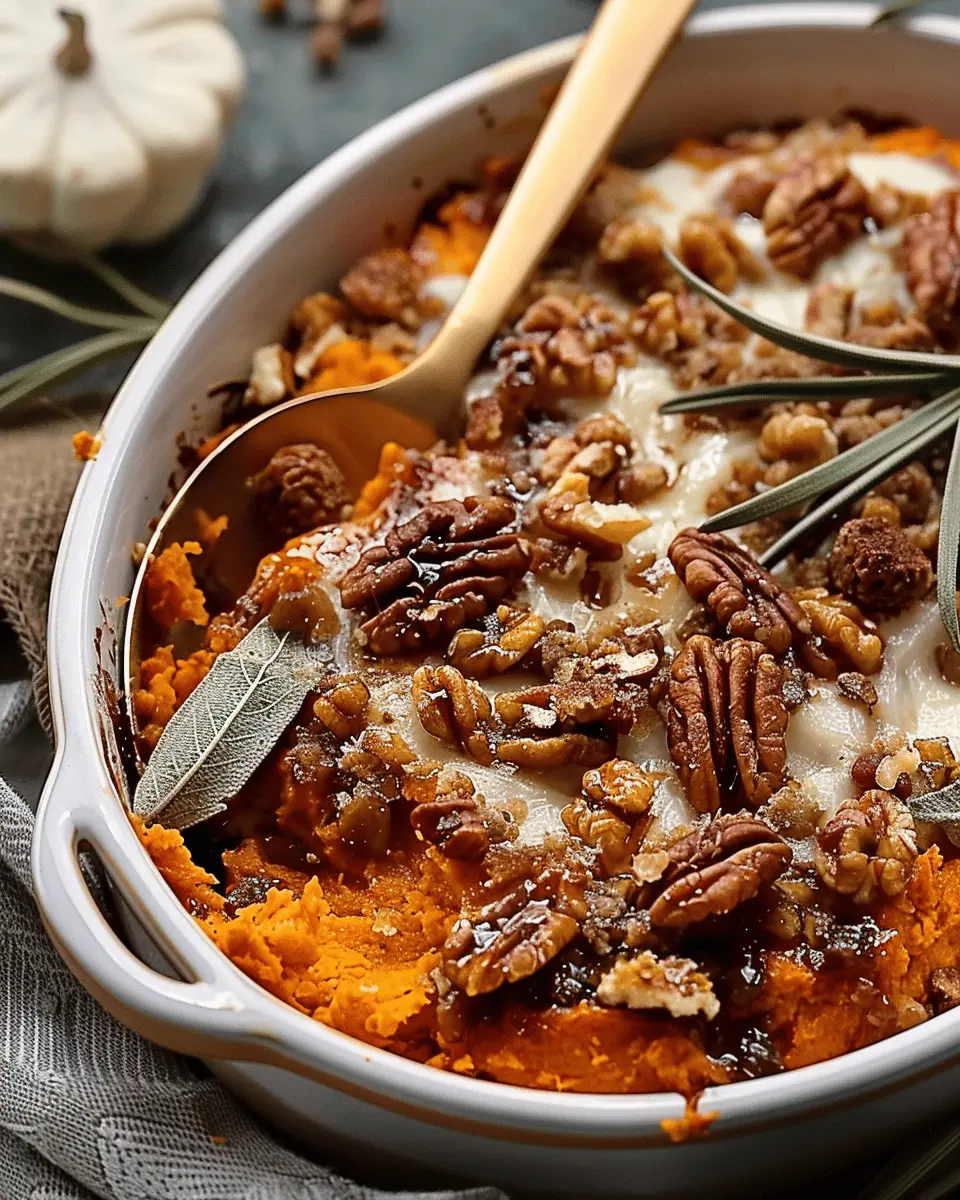 Imagine the delightful aroma wafting through your kitchen as the sweet potatoes bake to perfection, mingling with the rich scents of maple syrup and spices. This dish often graces tables during holiday gatherings, but it’s perfect for any occasion. Its blend of flavors and textures creates a comforting dish that invites everyone to dig in.
