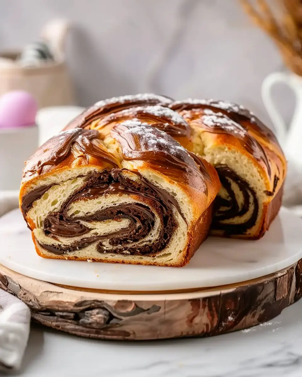 A delightful Easter bread with a rich Nutella swirl, perfect for family gatherings.