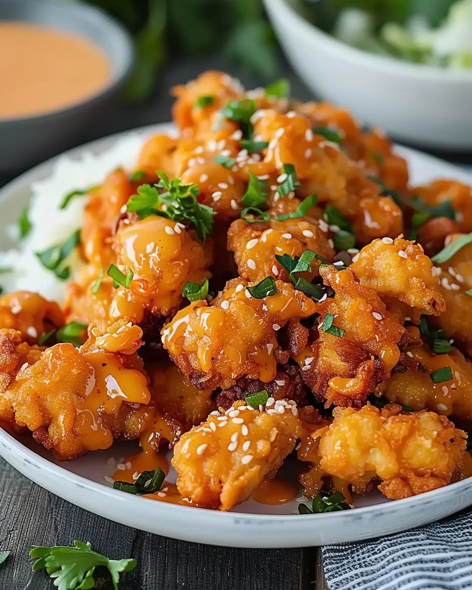 Finally, plate your Spicy Bang Bang Chicken and garnish it with sliced green onions and sesame seeds for an extra pop of flavor and presentation. Serve it with some crispy vegetables or a side of rice, and you’ve got a complete meal that’s sure to become a favorite at your dinner table.