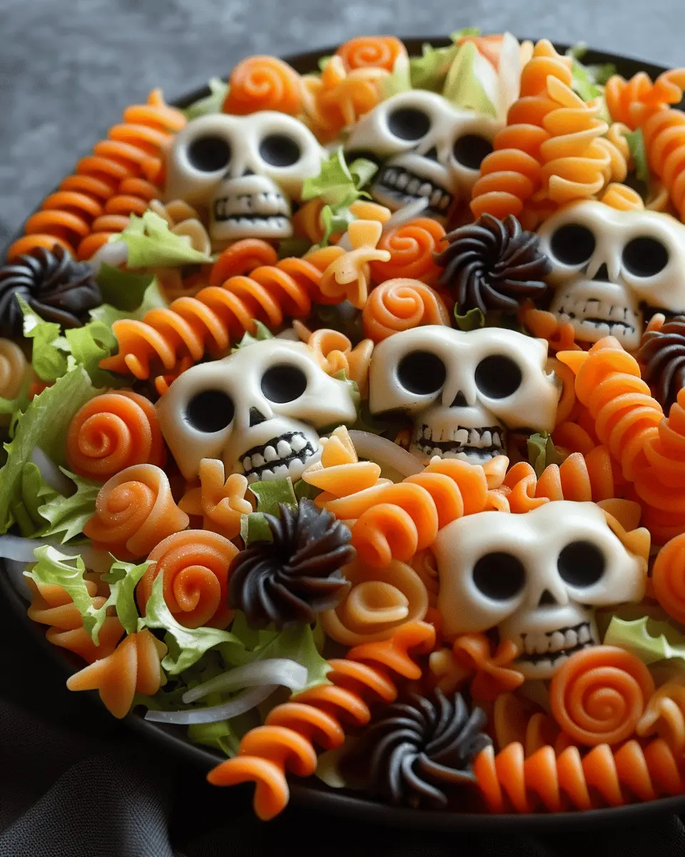 Keywords: Spooky Halloween Pasta Salad, Halloween recipes, kid-friendly pasta salad